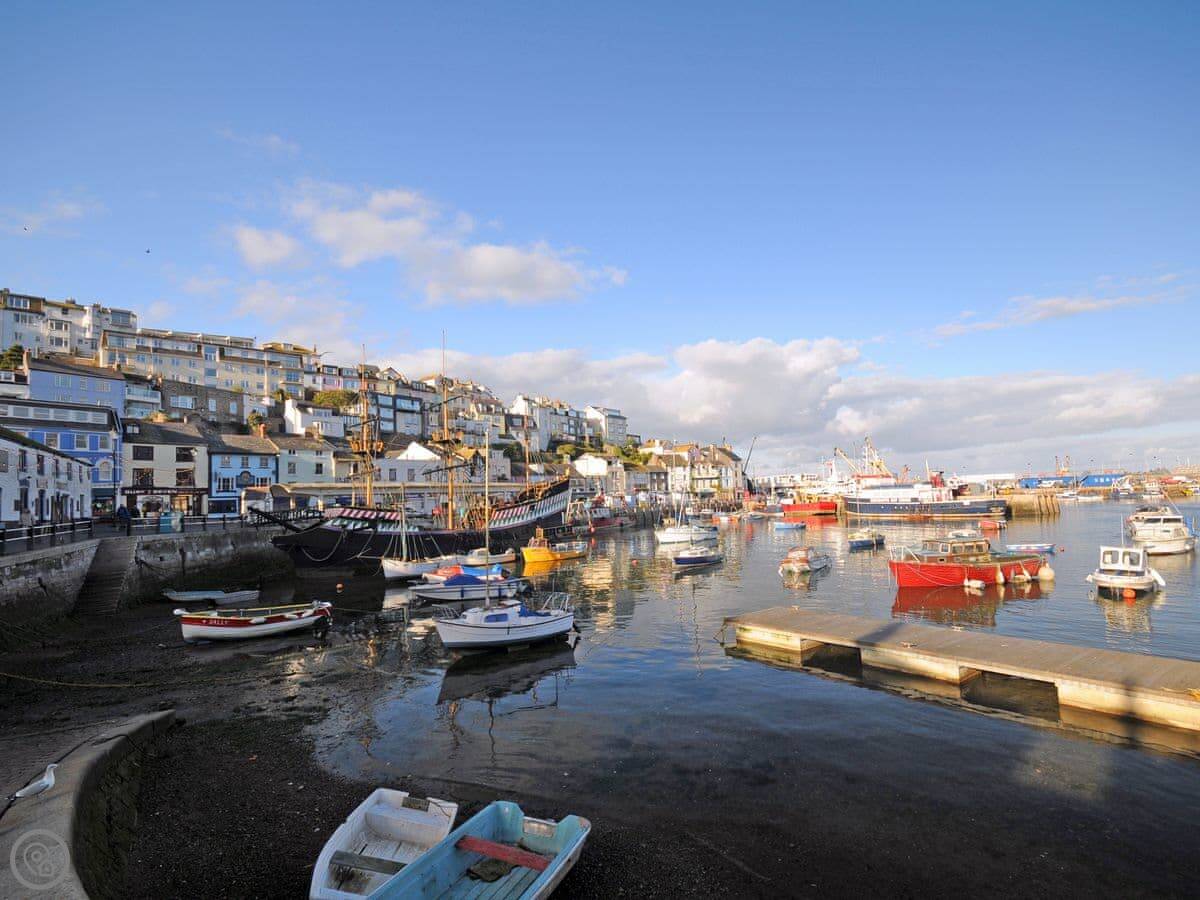 It's a five minute walk down the hill into the town centre and the harbour. Brixham's a proper fishing port. You can watch the boats come in and get good fish and chips. The shops and pubs are all within walking distance, so you often don't need the car.