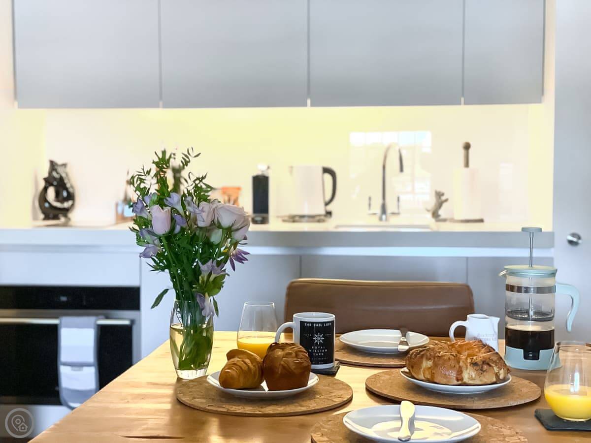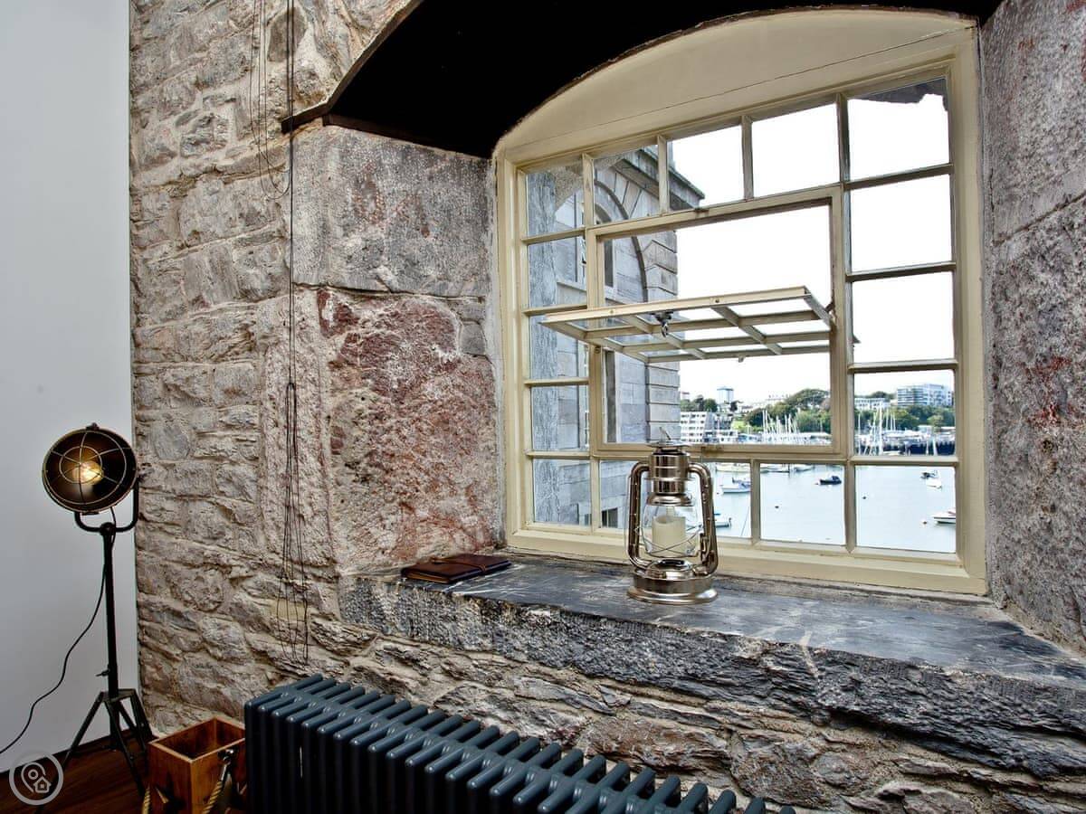 Set in the historic Royal William Yard, The Sail Loft combines the character of a historic setting with a contemporary décor. Step into the open plan living space, and the first thing you’ll notice is the view…the apartment overlooks the waters of the harbour below, and what an awesome location to sit back and watch the boats settled on their moorings and the passing ferries.