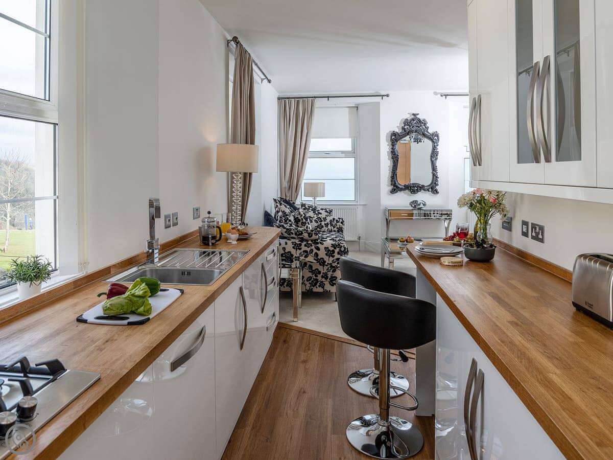 Babbacombe Bay is a first floor apartment in Torquay. The name comes from the bay it overlooks. You get a proper sea view from the living room.