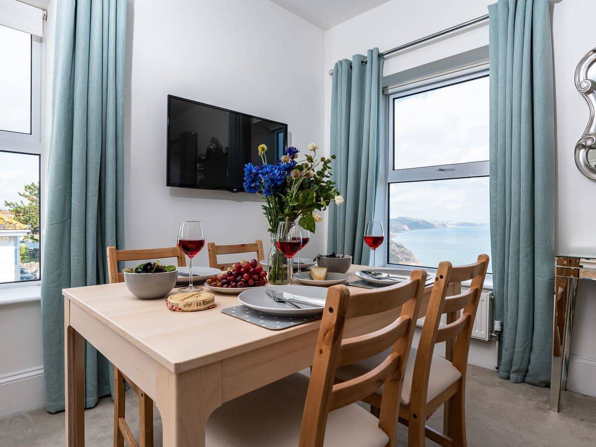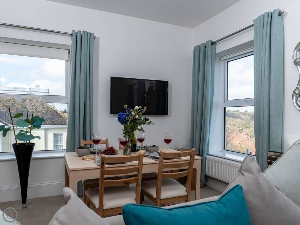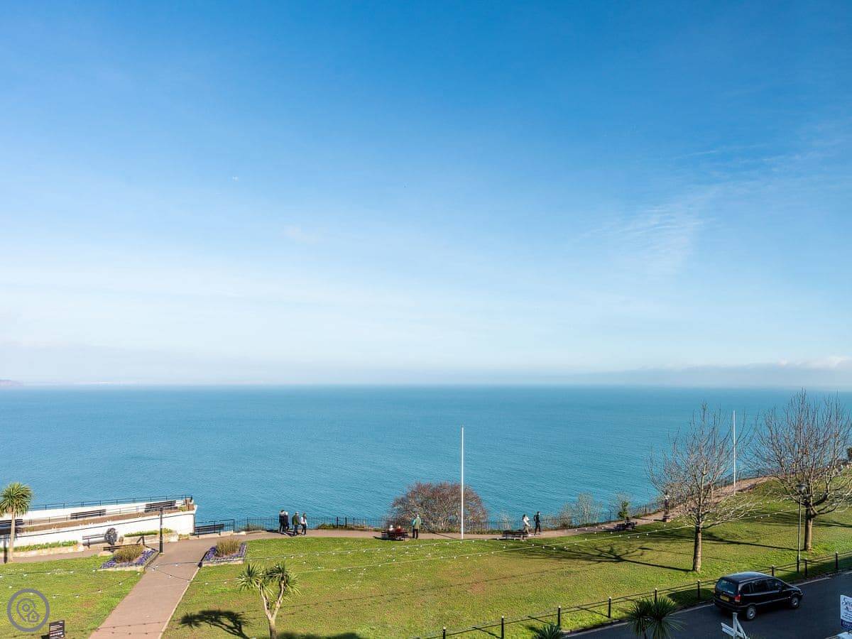 The Cliff Top is an apartment on the second floor of a building in Torquay. It's modern and clean, with a 4 Star rating. The views are the main thing. You look straight out over the sea.