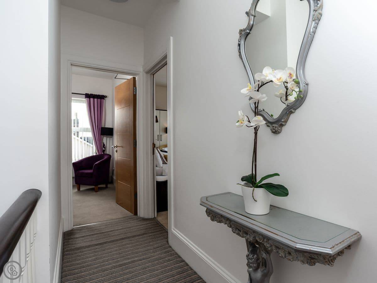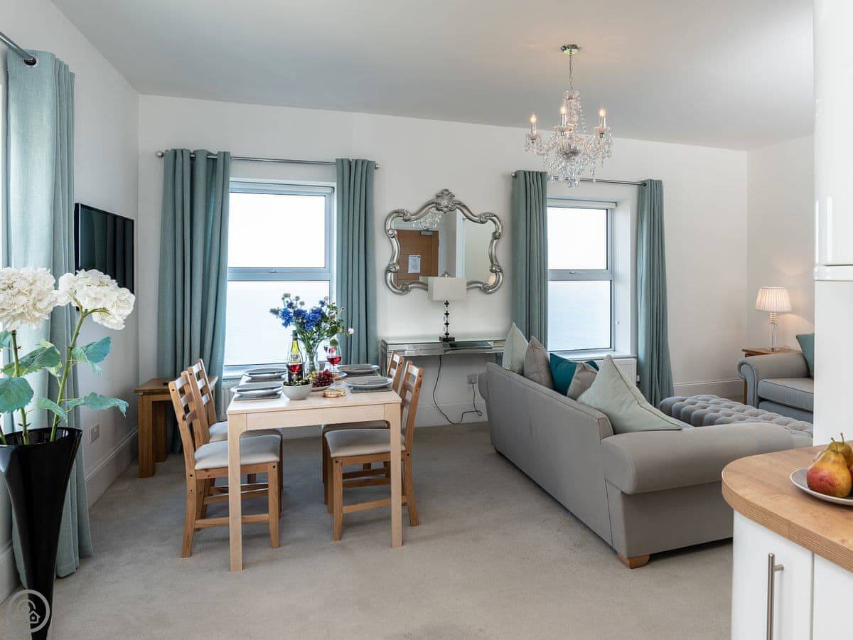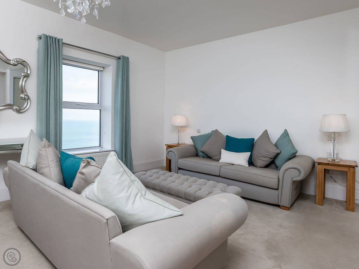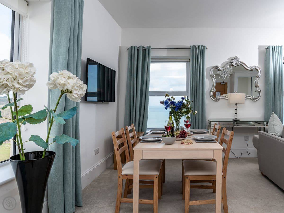 The Cliff Top is an apartment on the second floor of a building in Torquay. It's modern and clean, with a 4 Star rating. The views are the main thing. You look straight out over the sea.