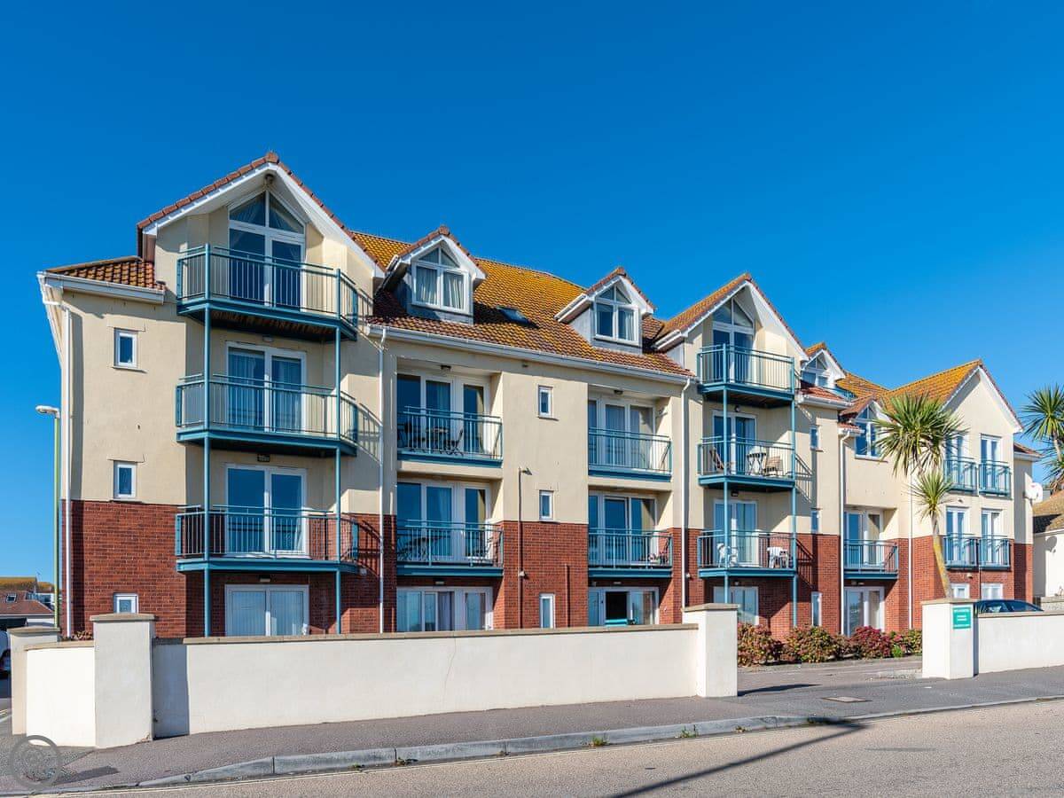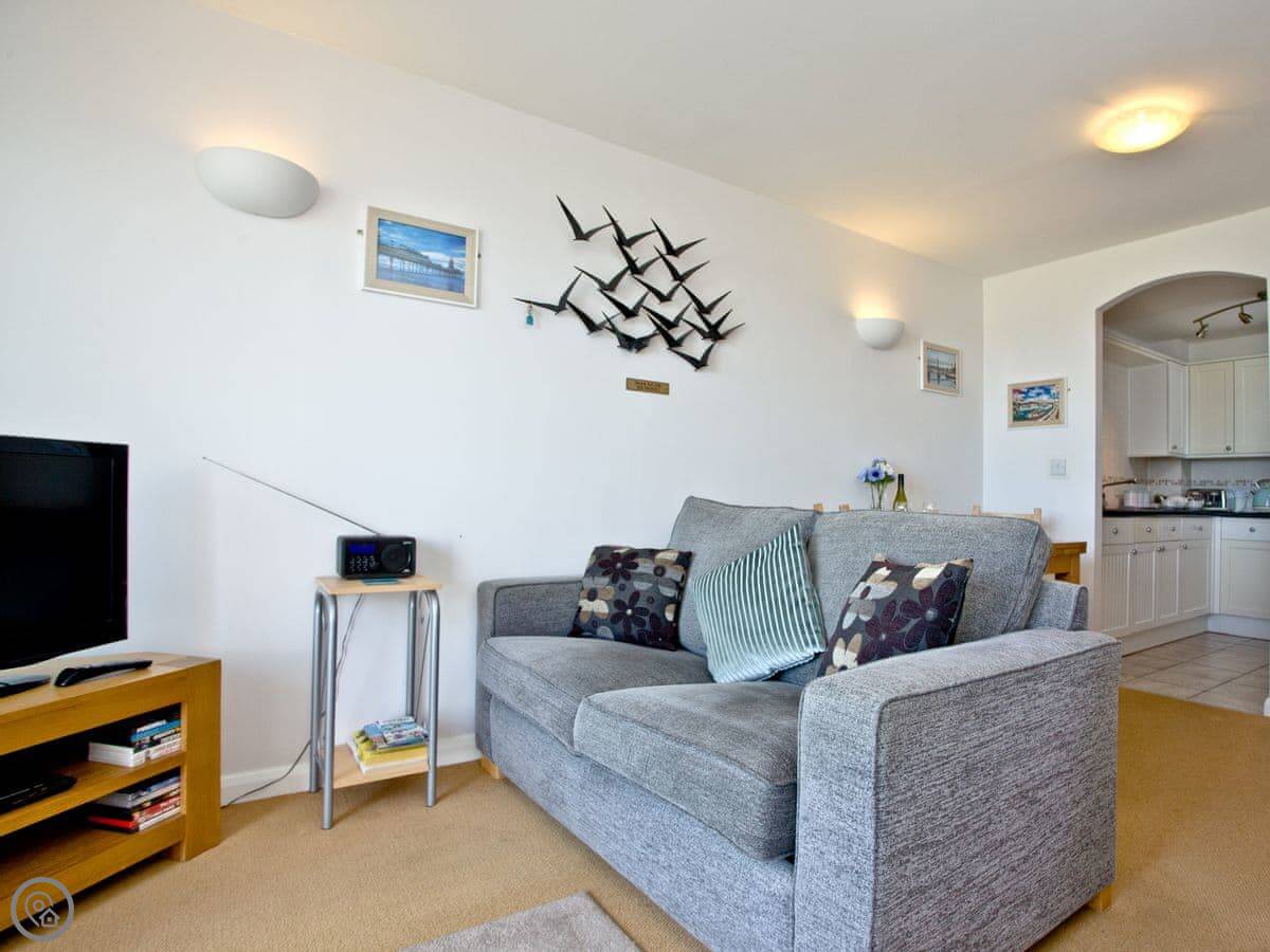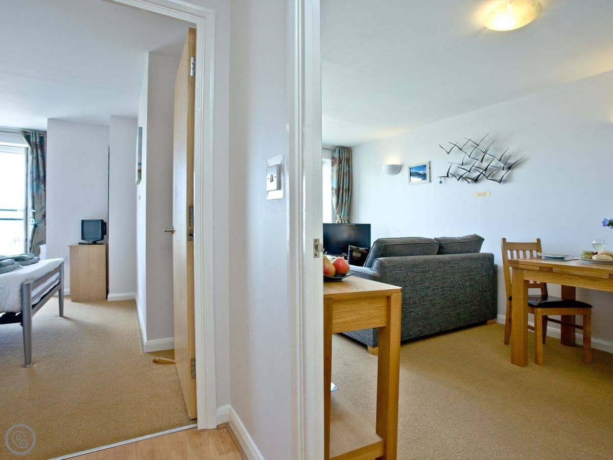 The main thing is the view. You look straight out over Preston Sands beach, and you can see right across the bay from Torquay round to Brixham. There's a Juliet balcony to stand at. The parking space is yours, which is handy.