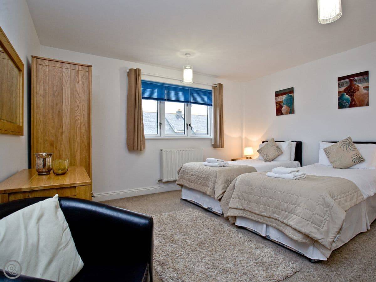 Fistral View is a first floor flat in a modern block in Newquay called Bredon Court. It sleeps six, with three bedrooms and two bathrooms. It’s got a 4 Star rating.