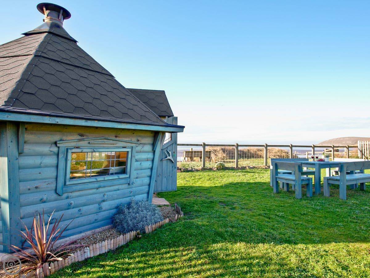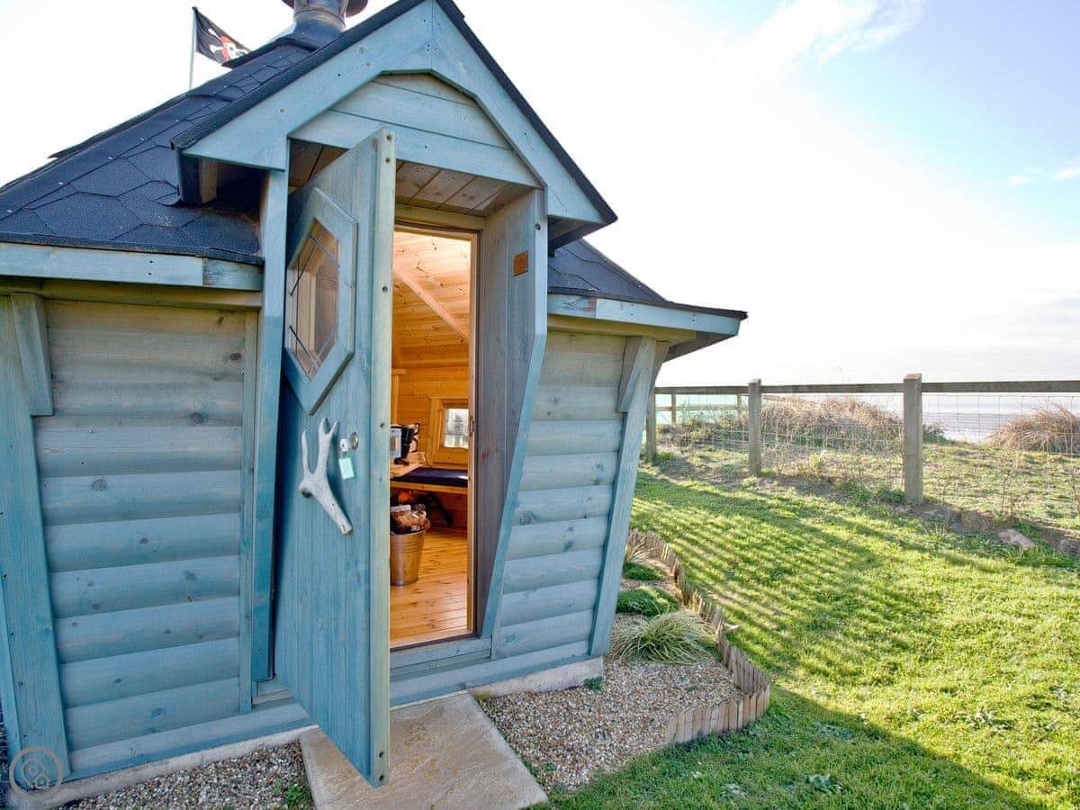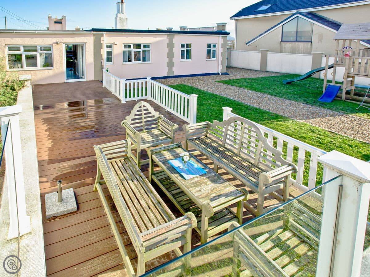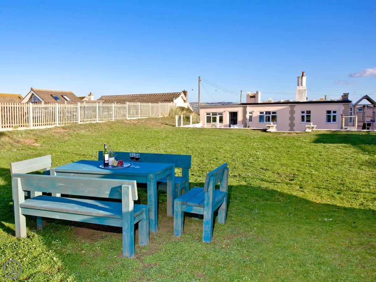 The beach is seven miles long. Dogs are allowed on it all year. The garden is fully enclosed, which is handy with pets or children. There's a deck with seating and a BBQ lodge.