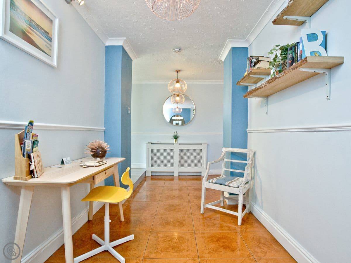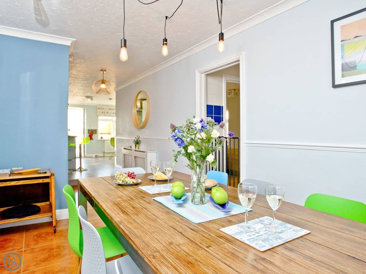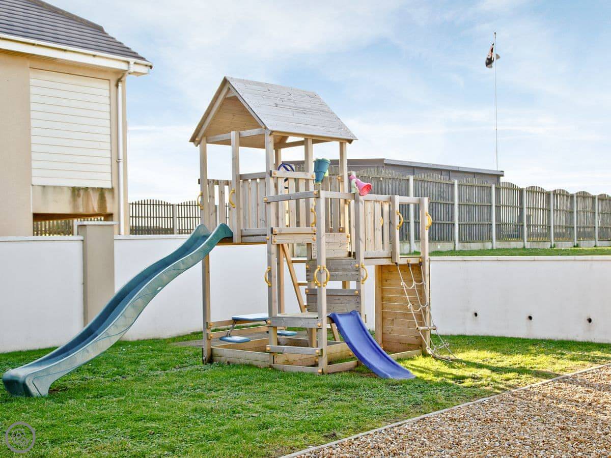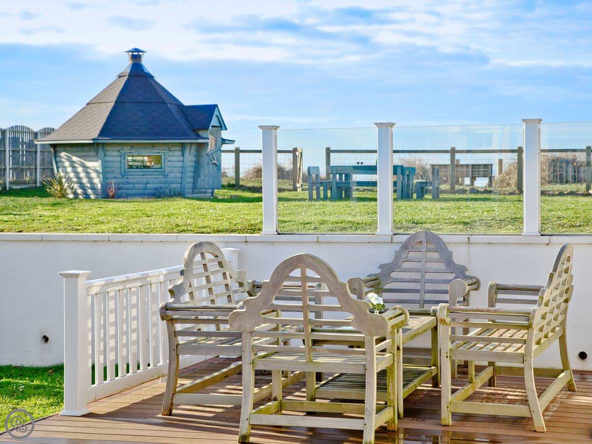 The beach is seven miles long. Dogs are allowed on it all year. The garden is fully enclosed, which is handy with pets or children. There's a deck with seating and a BBQ lodge.