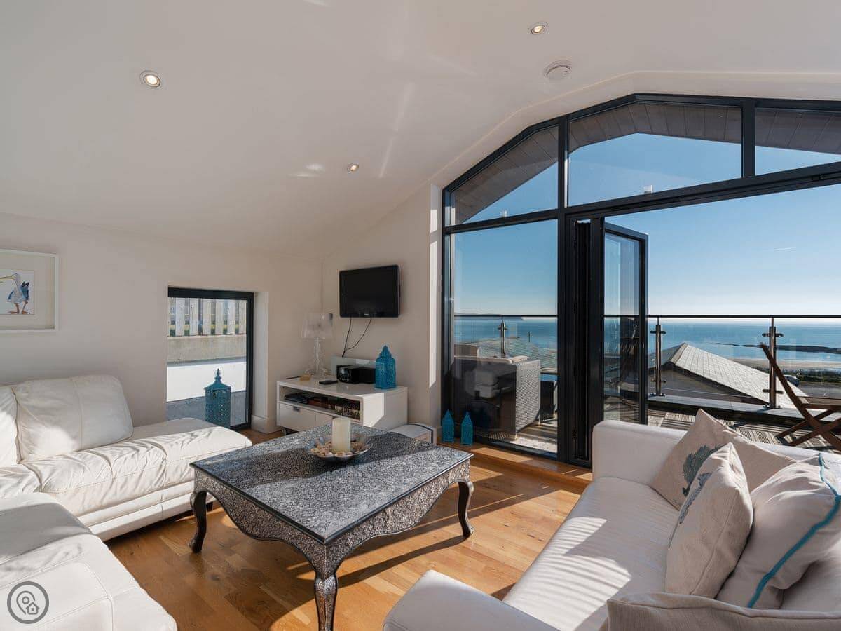 This is 4 Coastguards, down at Bigbury on Sea. It's one of a small group of houses right on the front, practically on the beach. The view from the front is the whole bay, nothing in the way.