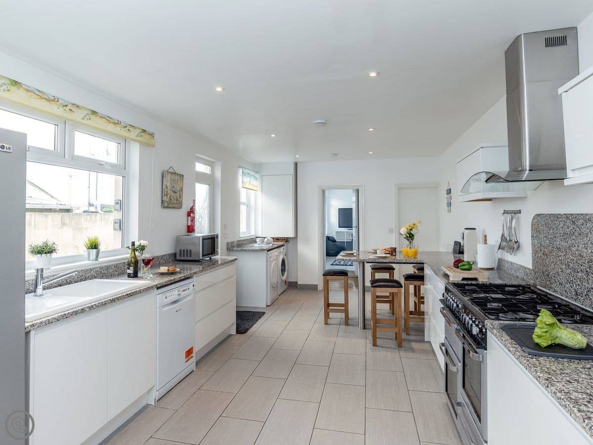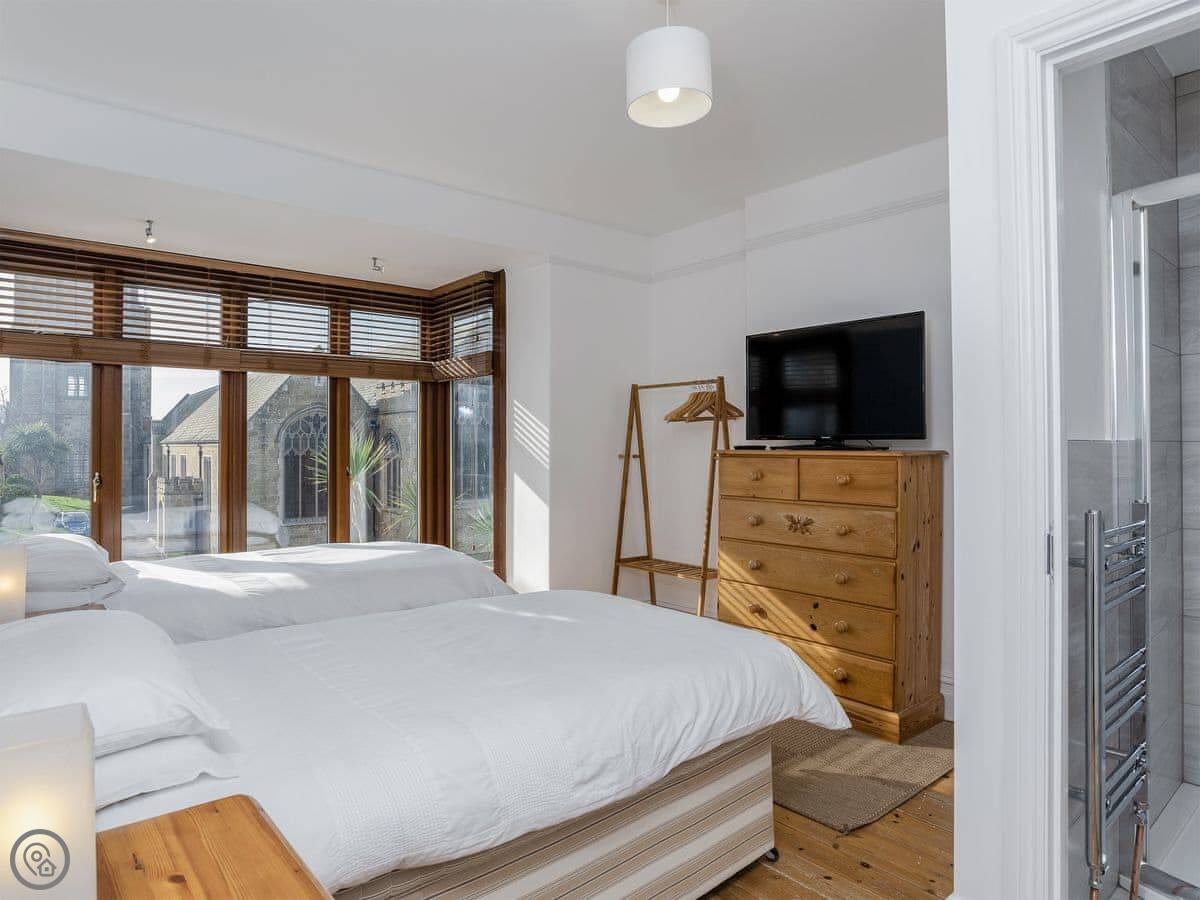 Chy-An-Brae is on Marcus Hill in Newquay. The name is Cornish for house on the hill. It's a big house, three floors, so it's good for a group. It sleeps twelve across six bedrooms. There are three bathrooms.