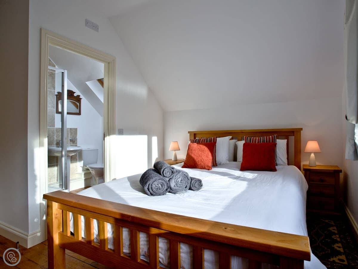 It sleeps four. There are three bedrooms and two bathrooms. One bathroom is attached to the main bedroom. It has a 4 Star rating, so it's comfortable and well-equipped.
