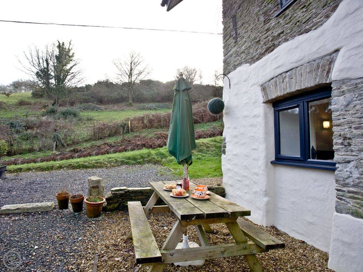 Quail Cottage is near Woodleigh in Devon. It's a modern cottage, part of a small group of three. The garden is shared with the other cottages, but there's plenty of space.
