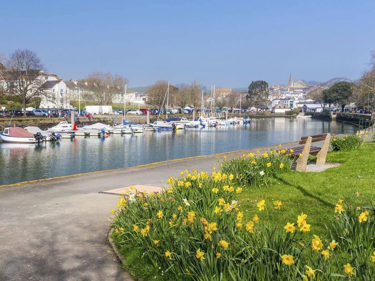 For the area, you're in the South Hams. Bantham Beach is about a 15 minute drive for surfing. Kingsbridge is closer, maybe 10 minutes. You can get groceries there or go out on the estuary. Burgh Island, with its sea tractor, is about half an hour away.
