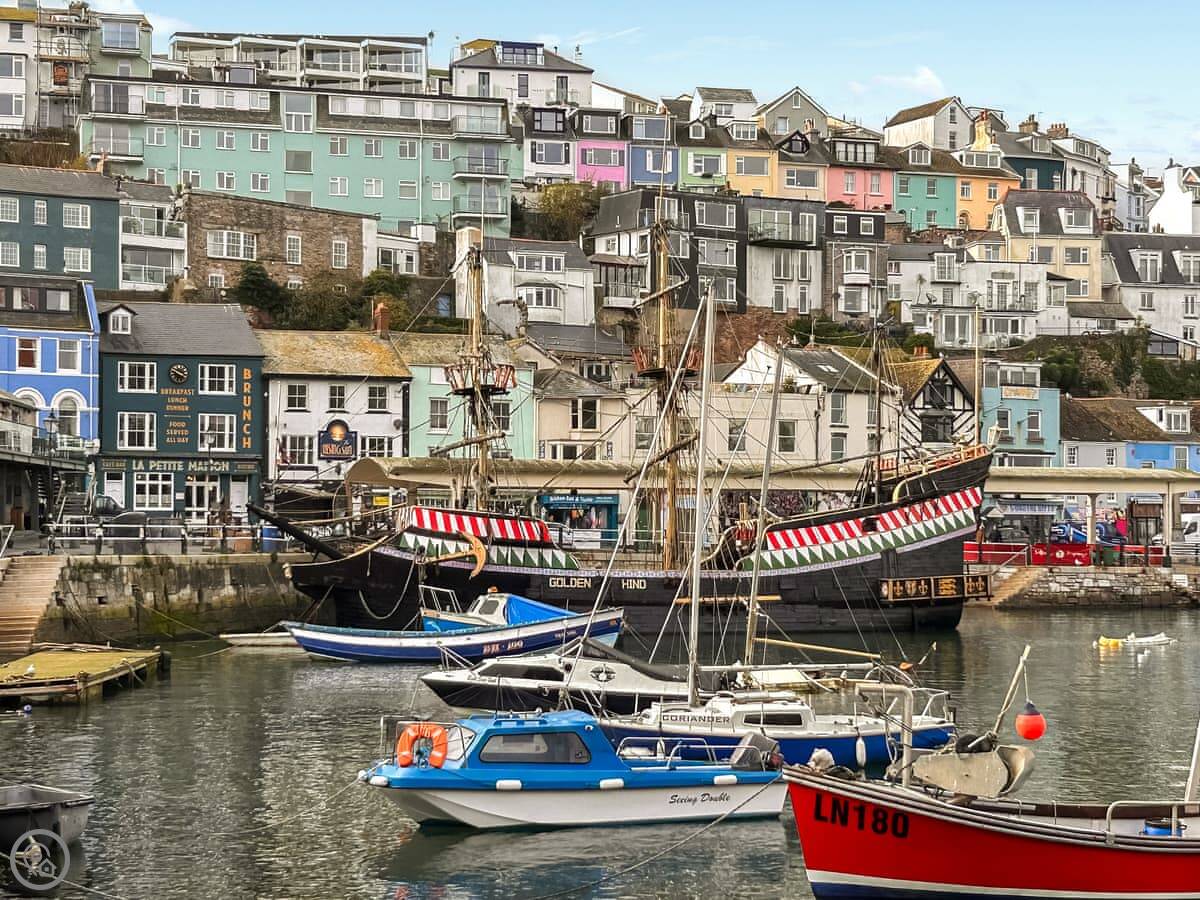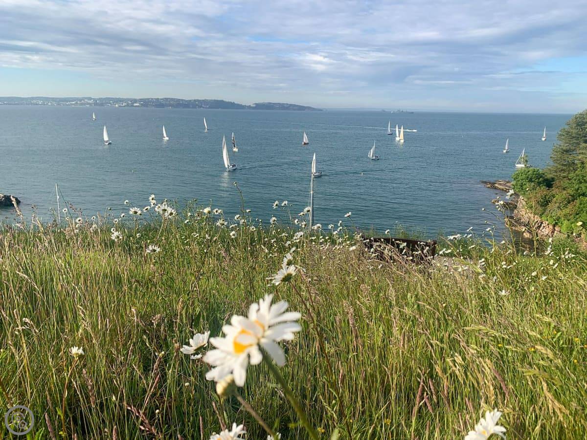 You're right on the South West Coast Path. You can walk down to Brixham harbour in about 15 minutes. That's where the working port is, with the fish market, cafes and shops. Broadsands beach is about 25 minutes walk the other way.