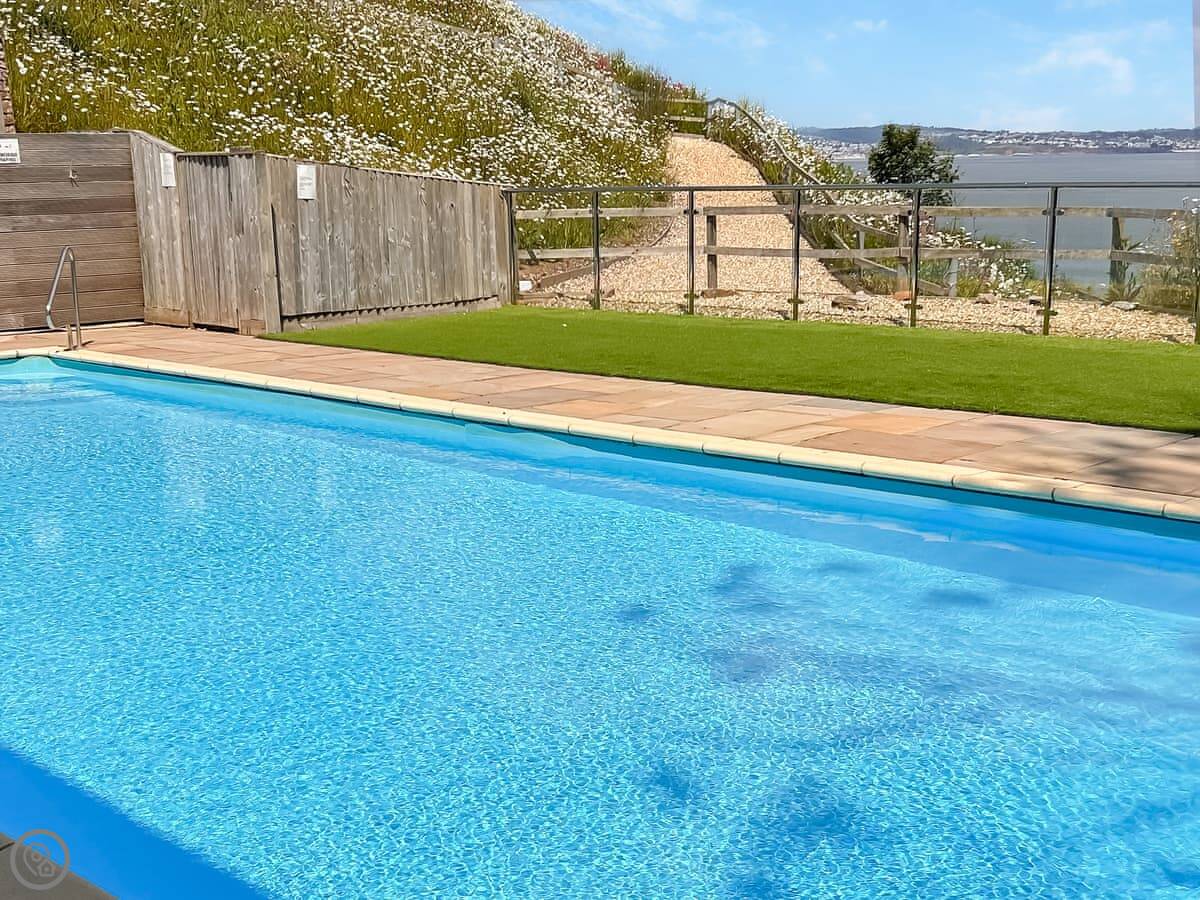 The site has a shared outdoor swimming pool you can use. There's also allocated parking.
