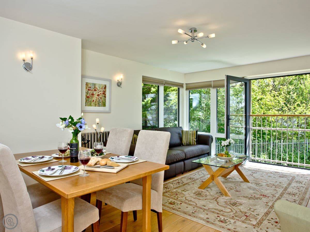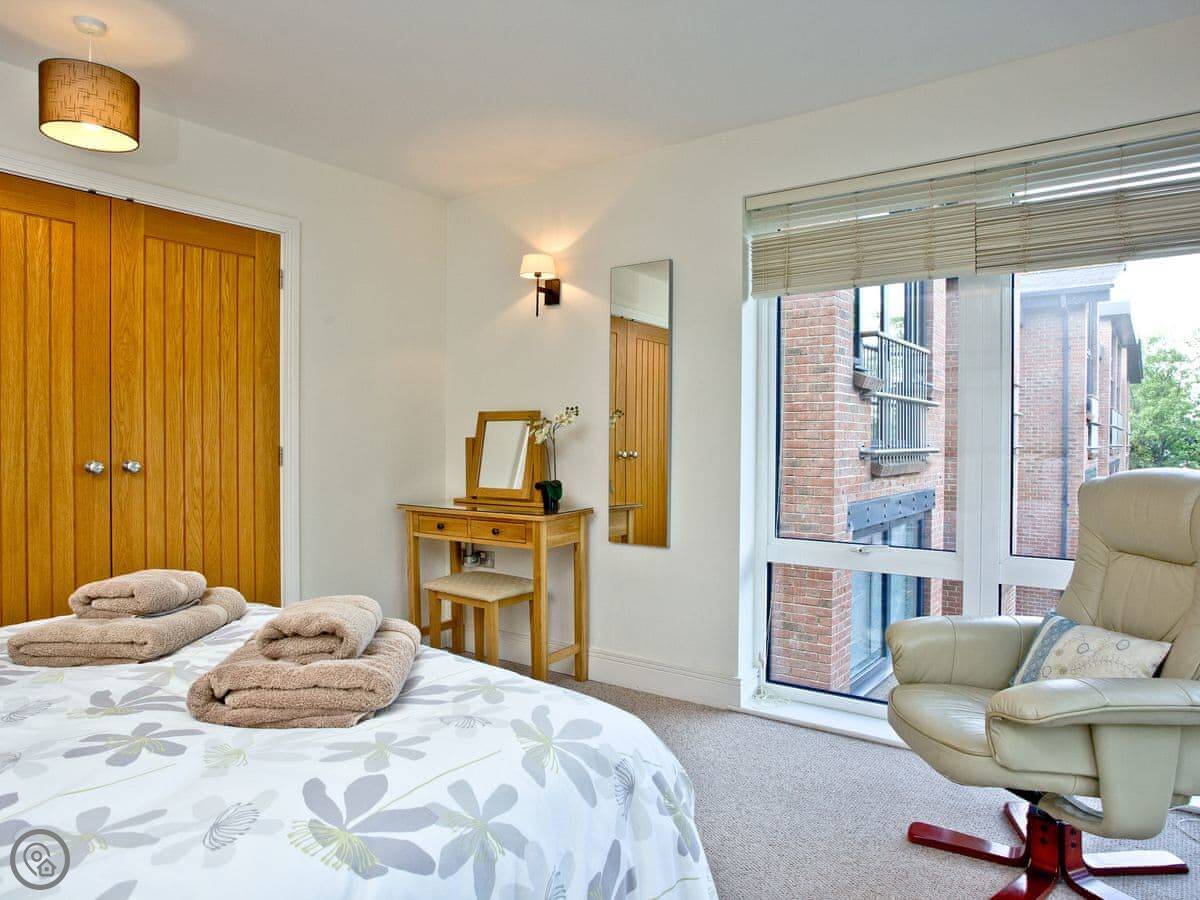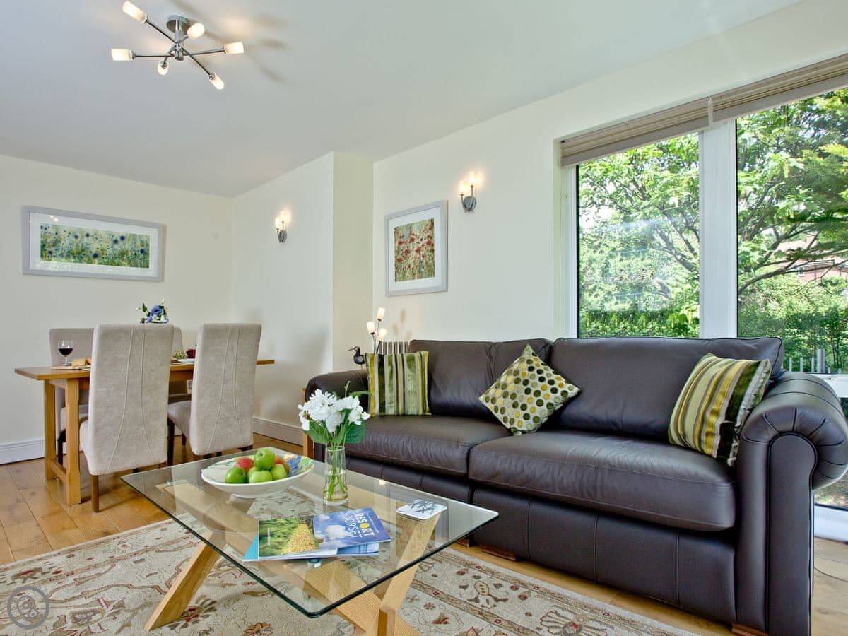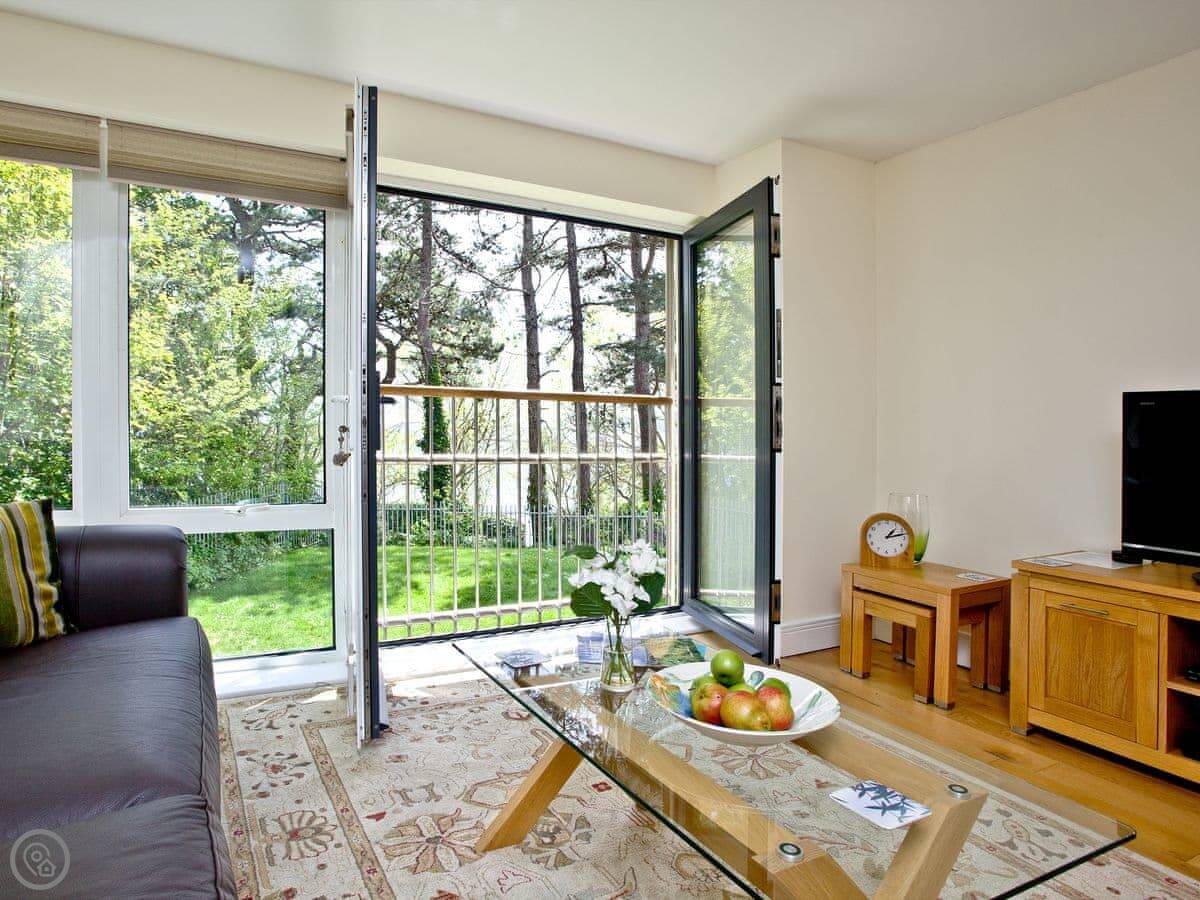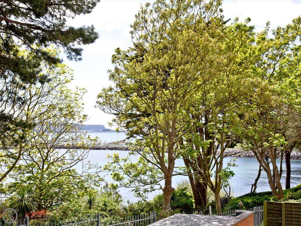 Cove View is an apartment in Weymouth. First floor. It's part of this modern development, the Admirals Quarter, but it's at the back, so it's quiet. You look out over Nothe Gardens and you can see the sea through the trees.