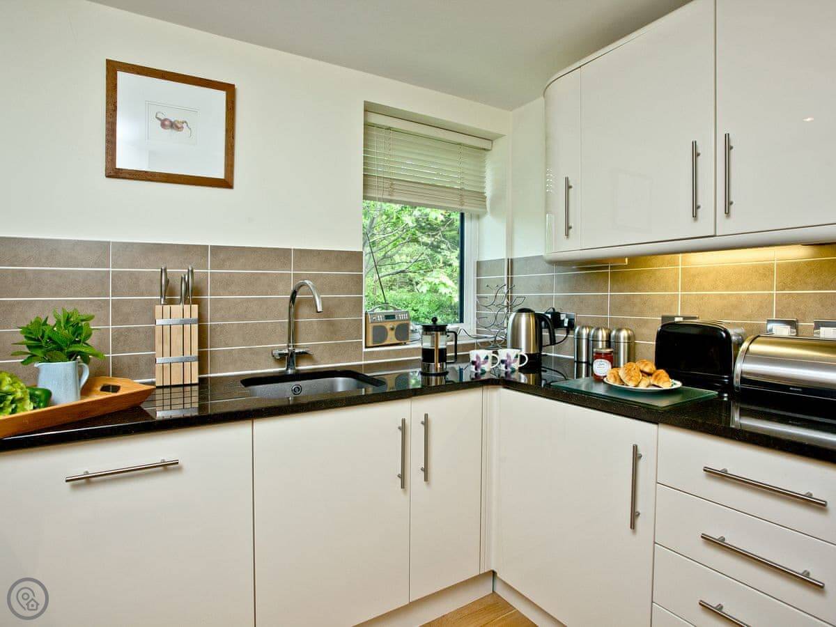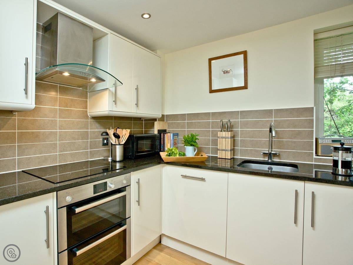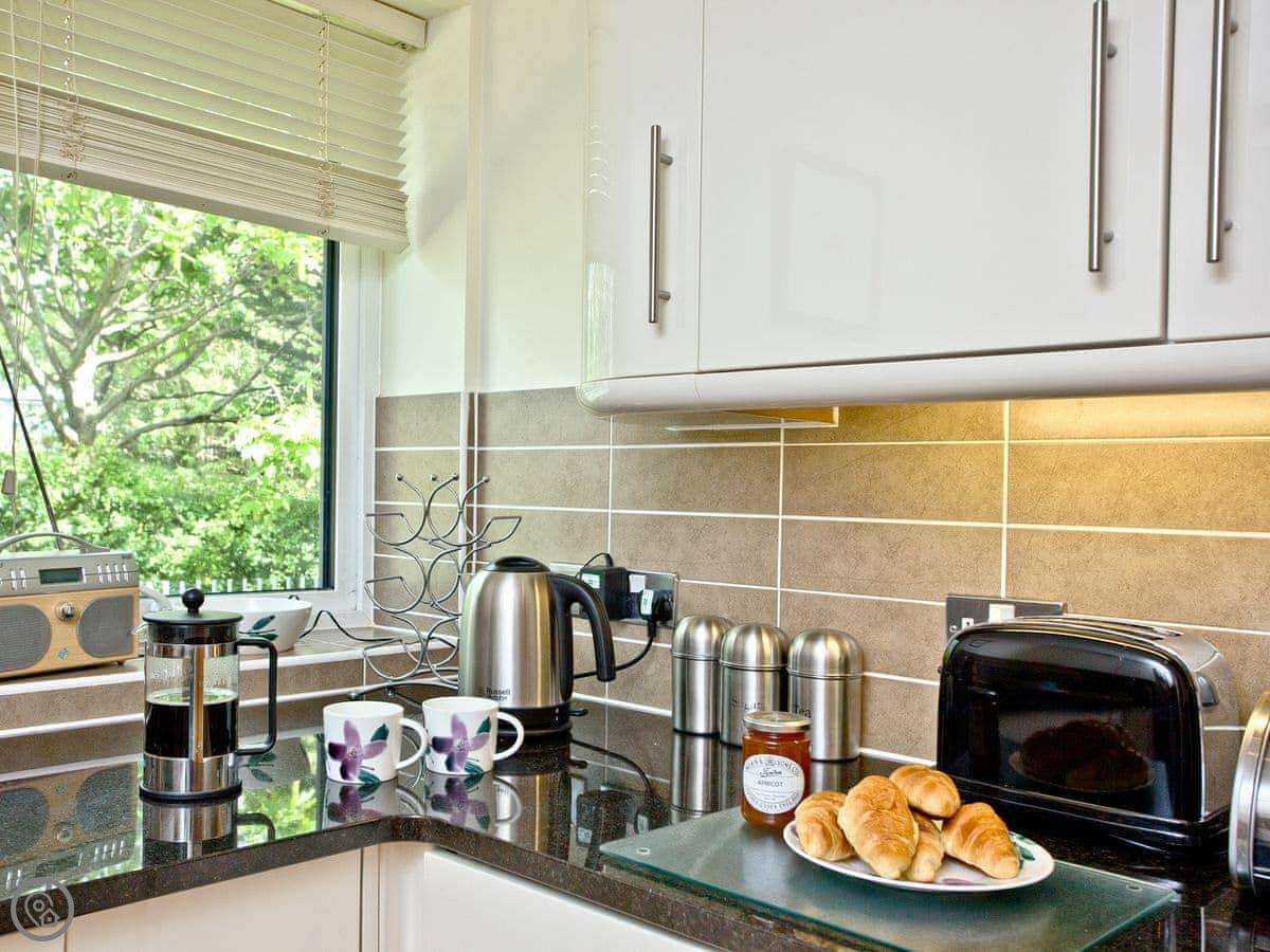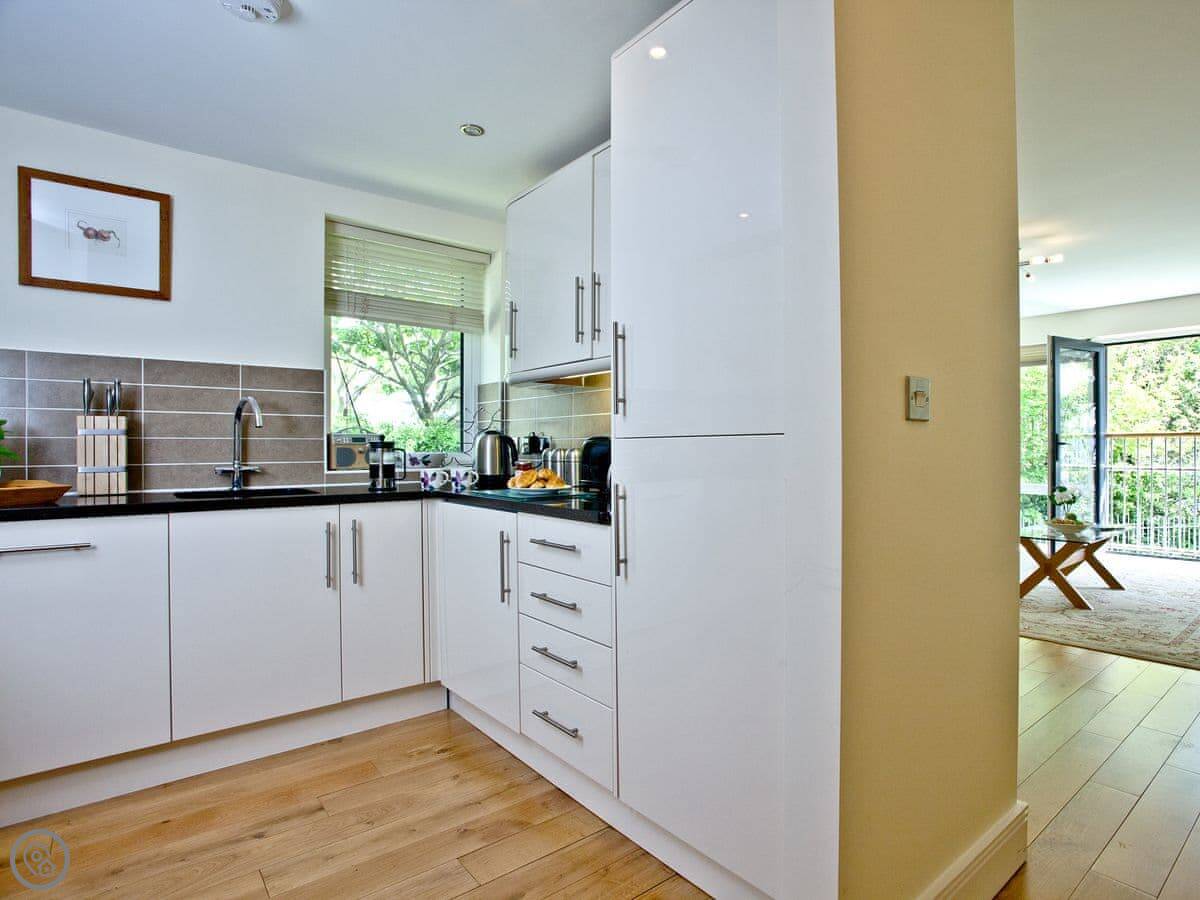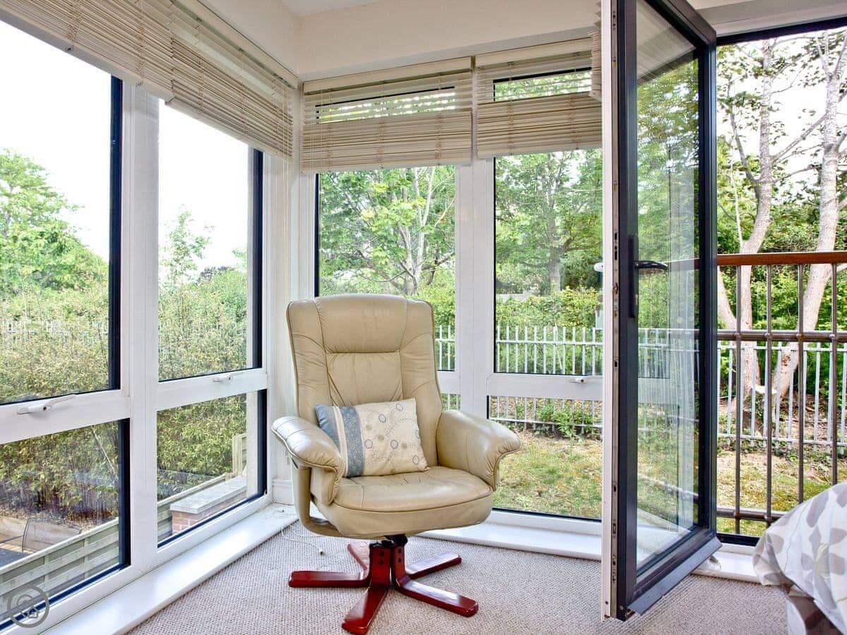Cove View is an apartment in Weymouth. First floor. It's part of this modern development, the Admirals Quarter, but it's at the back, so it's quiet. You look out over Nothe Gardens and you can see the sea through the trees.