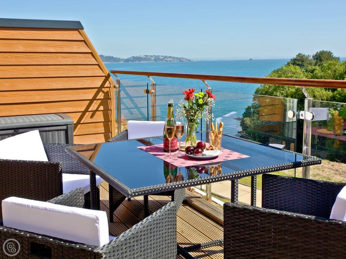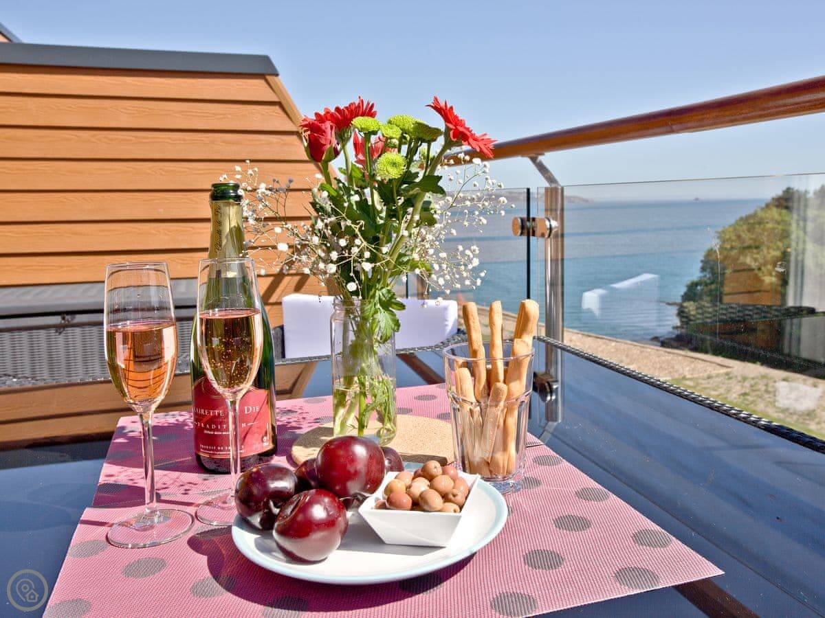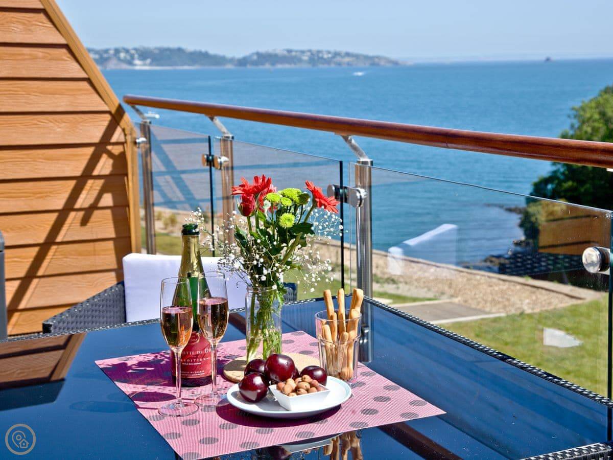 It's in Brixham, just next to Battery Park. You can walk down into the town and harbour. It's a proper fishing port, so you can buy fish right off the boats. The South West Coast Path is right there if you want a walk. For a bigger beach, you've got Goodrington Sands about fifteen minutes drive away.