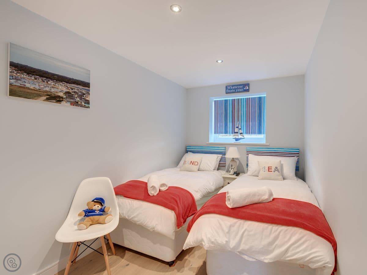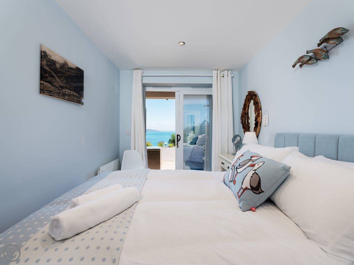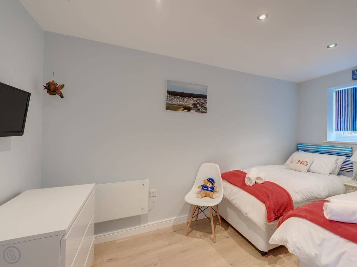 This is Puffin 1, an apartment in The Cove in Brixham. It sleeps four, in two bedrooms. There's one bathroom.