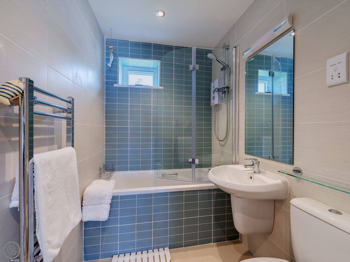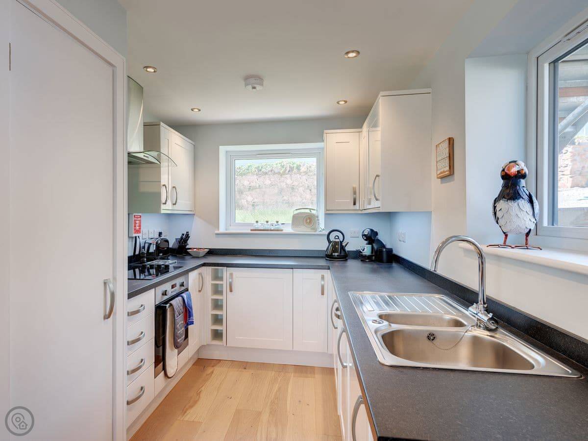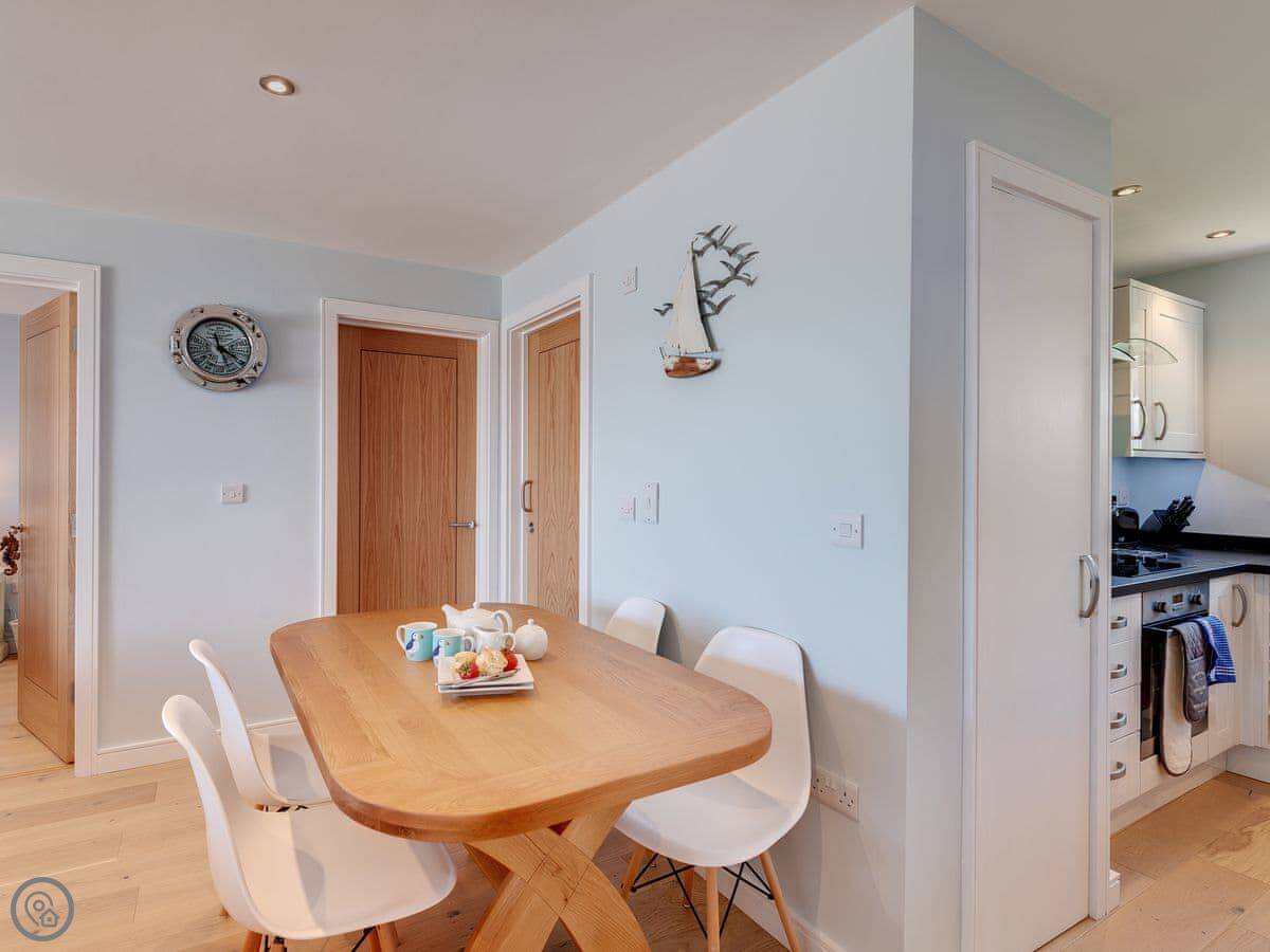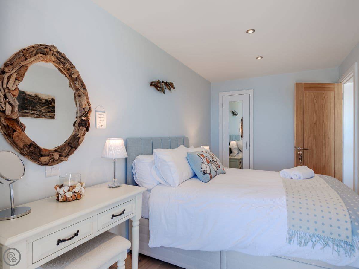 This is Puffin 1, an apartment in The Cove in Brixham. It sleeps four, in two bedrooms. There's one bathroom.