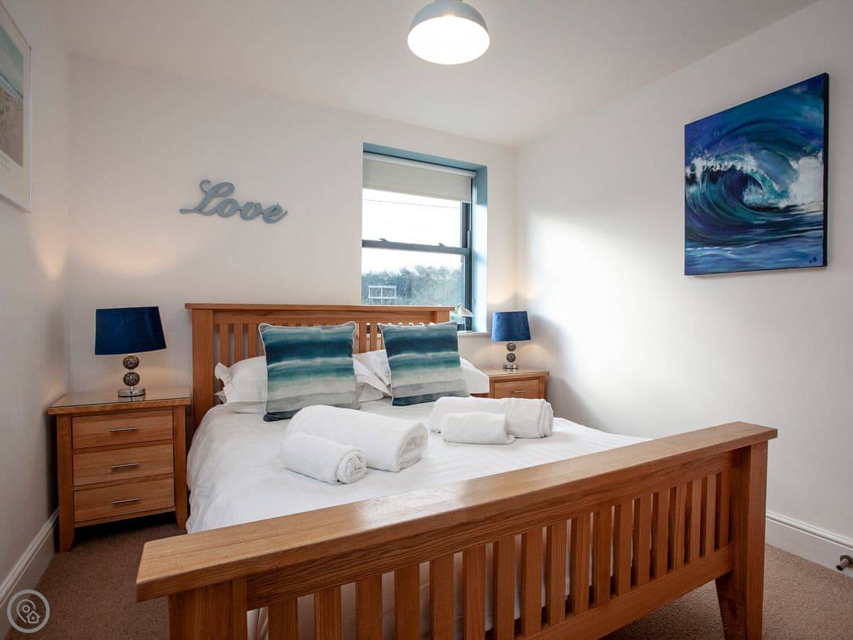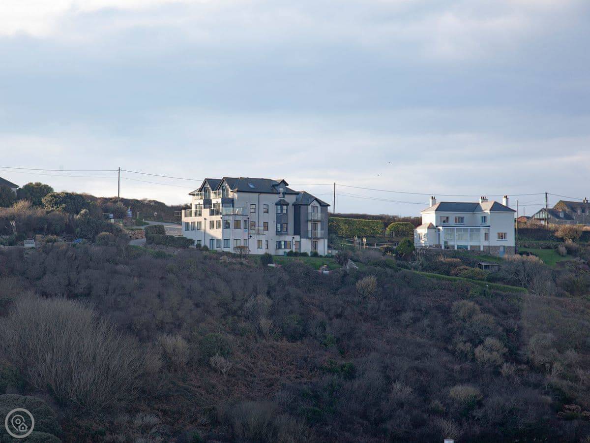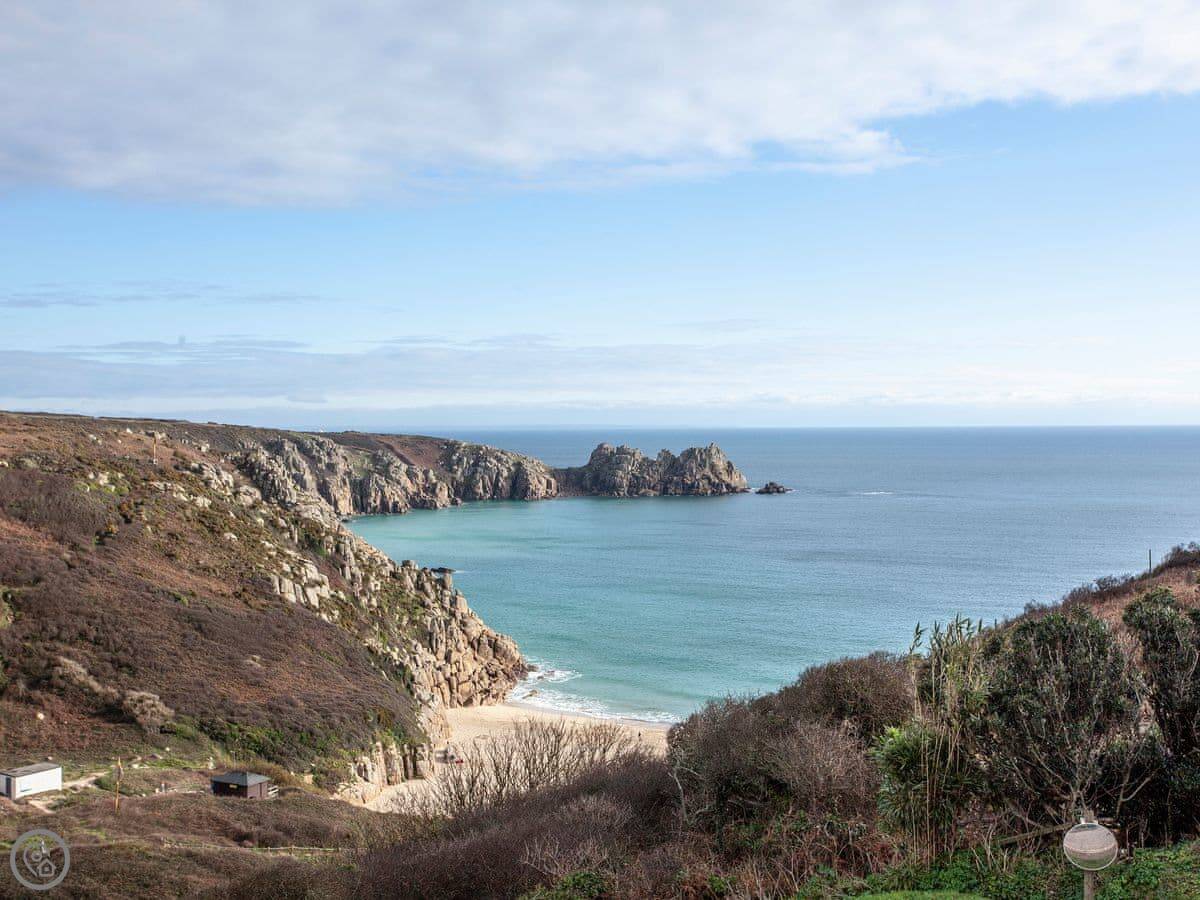 The main thing is the view. You're looking out over Porthcurno beach and the sea. There's a little furnished balcony to sit on and watch it.