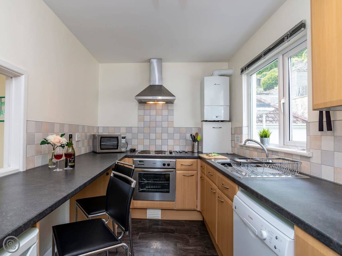 It sleeps four, in two bedrooms. There's one bathroom. It gets a 4 Star rating, which means it's well kept and comfortable. It has wooden floors and gas central heating. We let up to two dogs come.