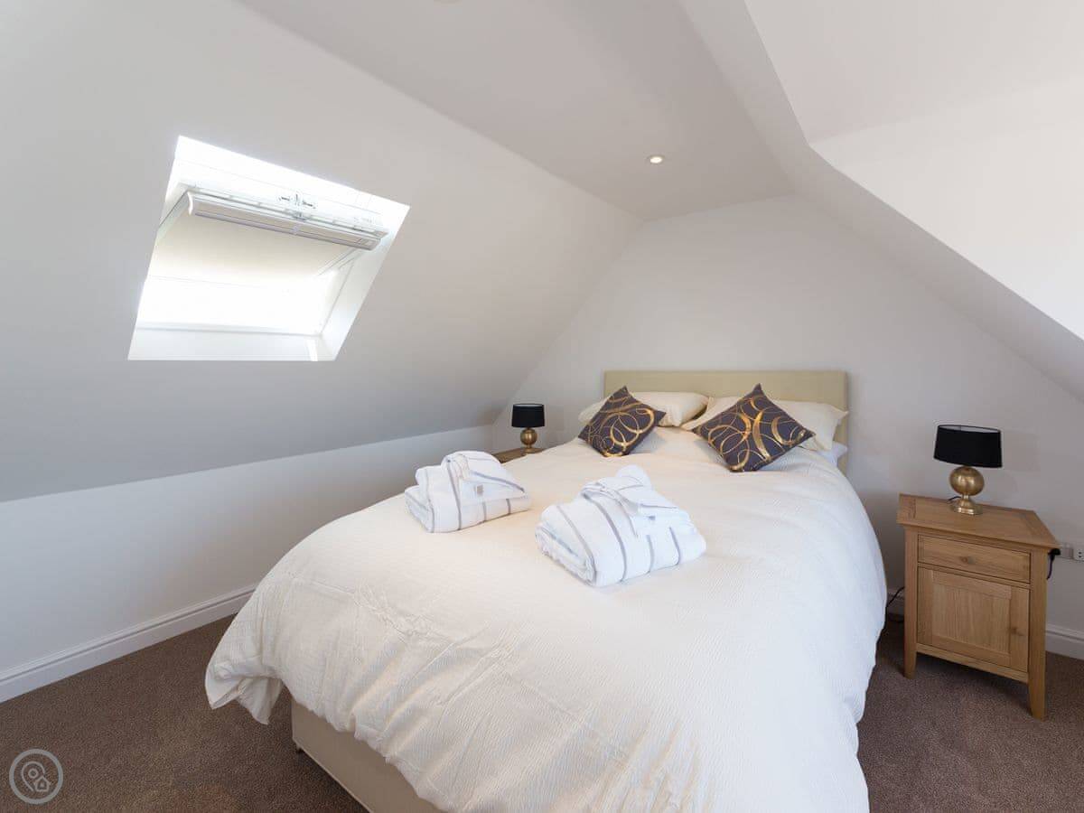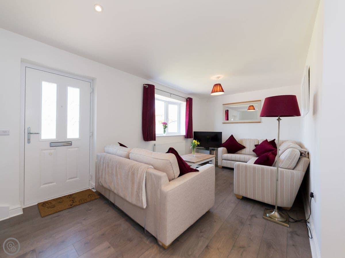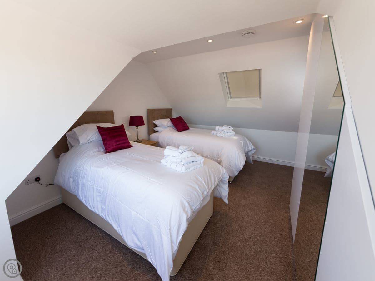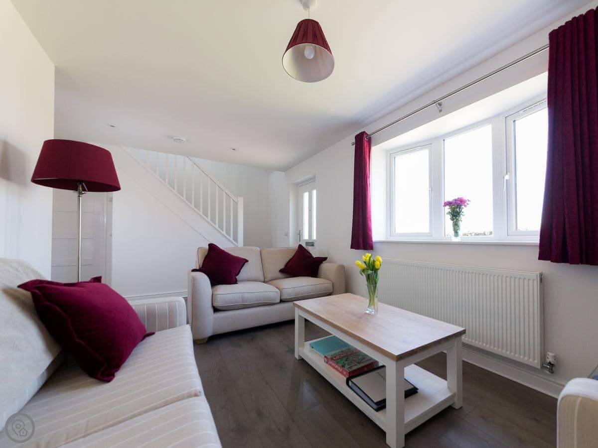 It sleeps six people. There are three bedrooms and two bathrooms. One bedroom and a shower room are downstairs, which is handy. The other two bedrooms and the main bathroom are upstairs. It's got a 4 Star rating.