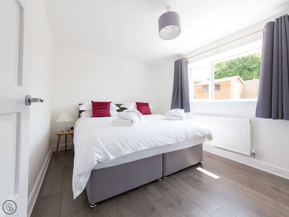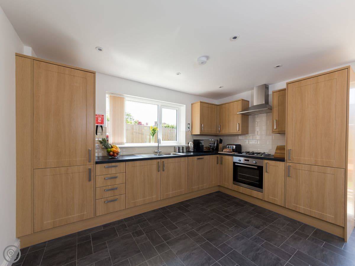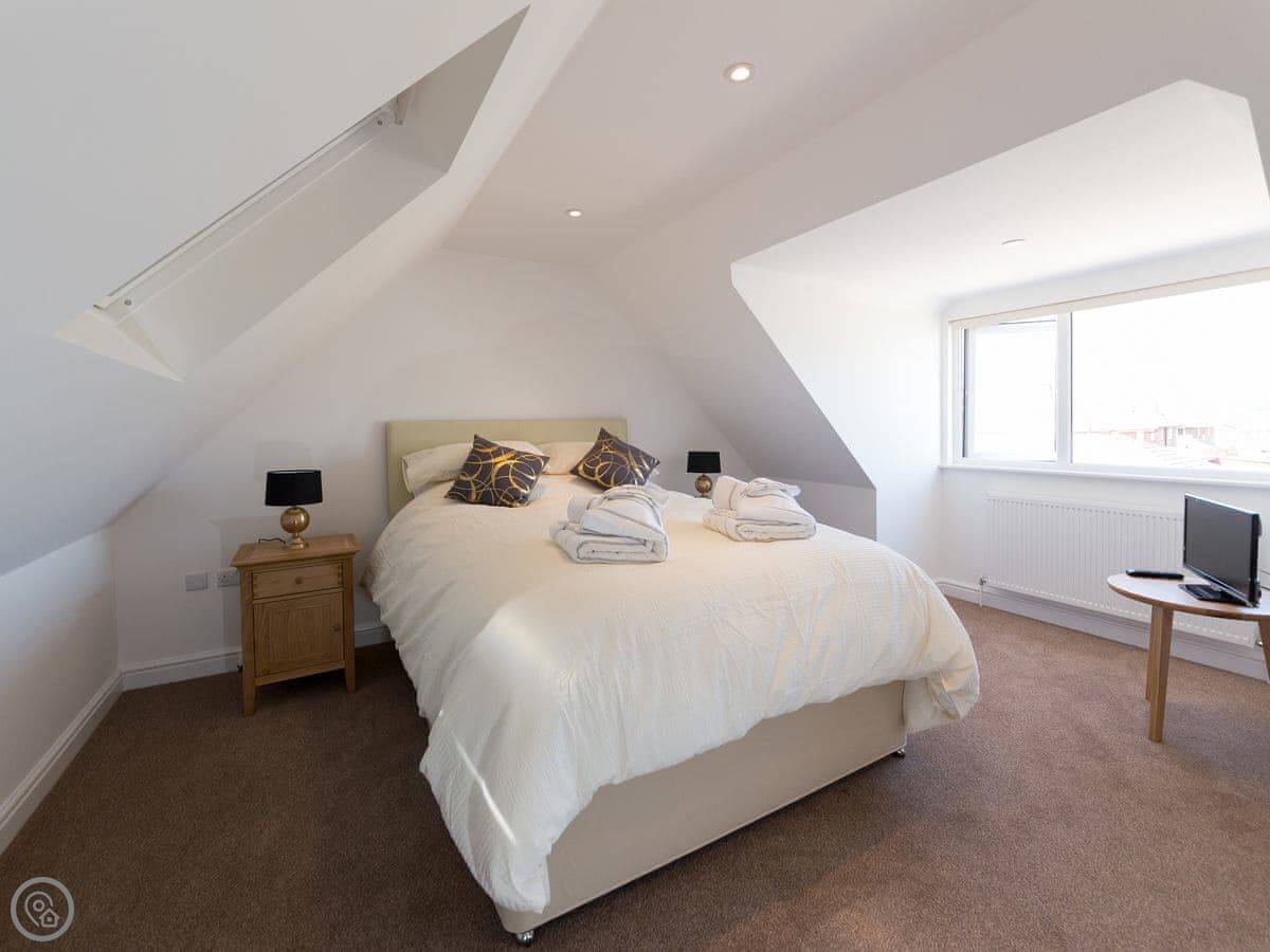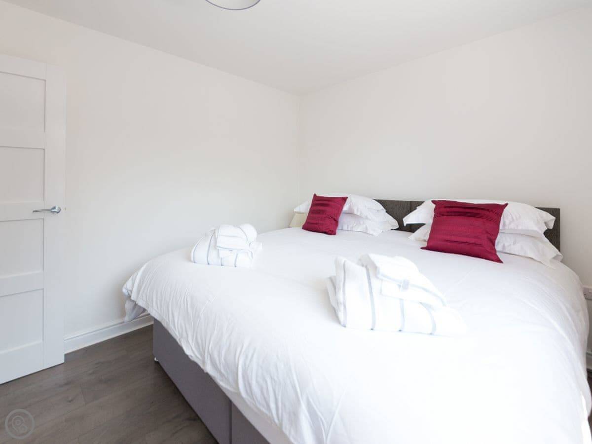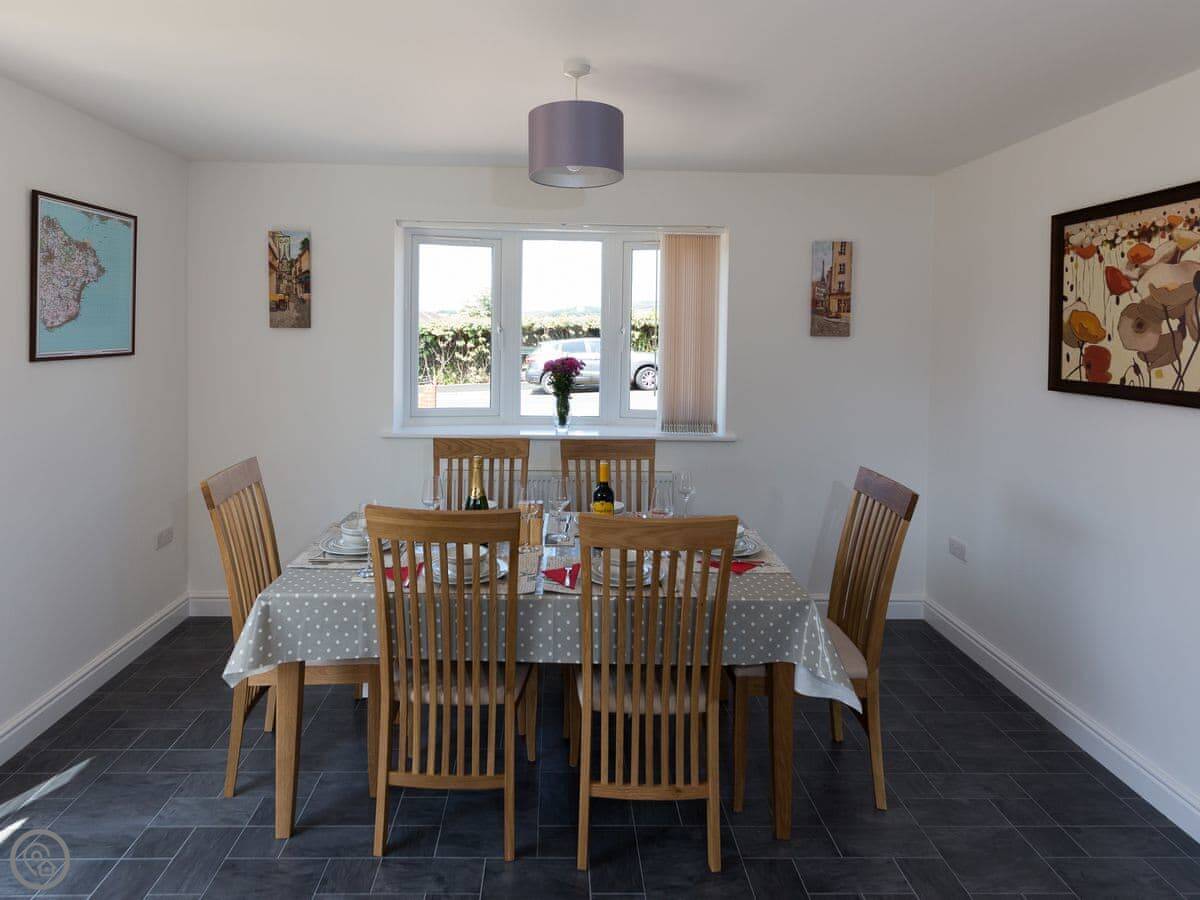 It sleeps six people. There are three bedrooms and two bathrooms. One bedroom and a shower room are downstairs, which is handy. The other two bedrooms and the main bathroom are upstairs. It's got a 4 Star rating.