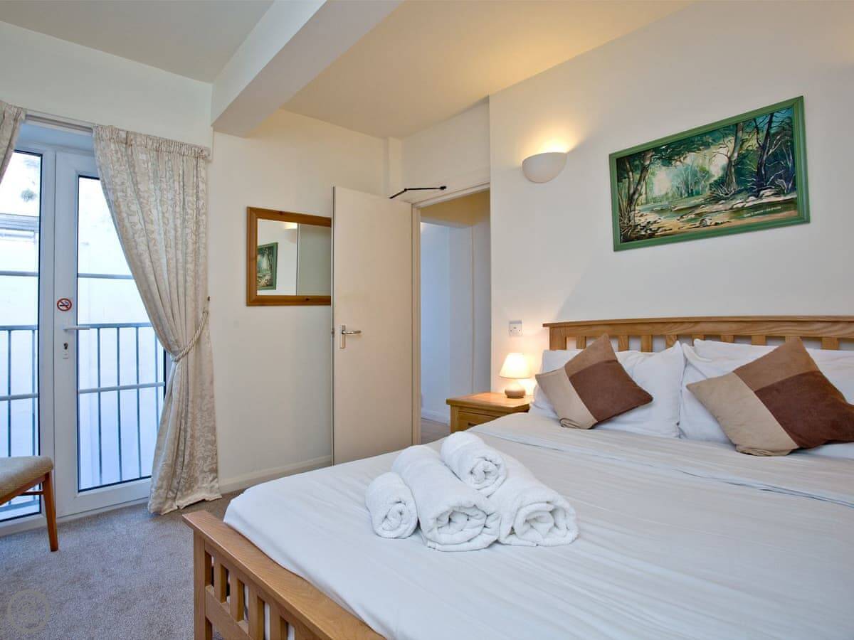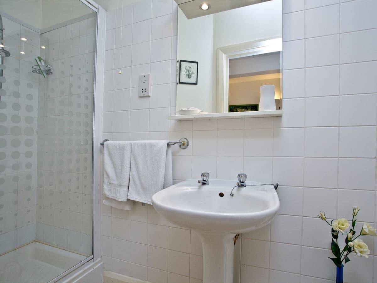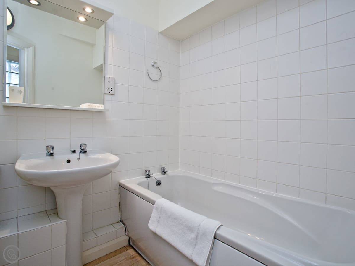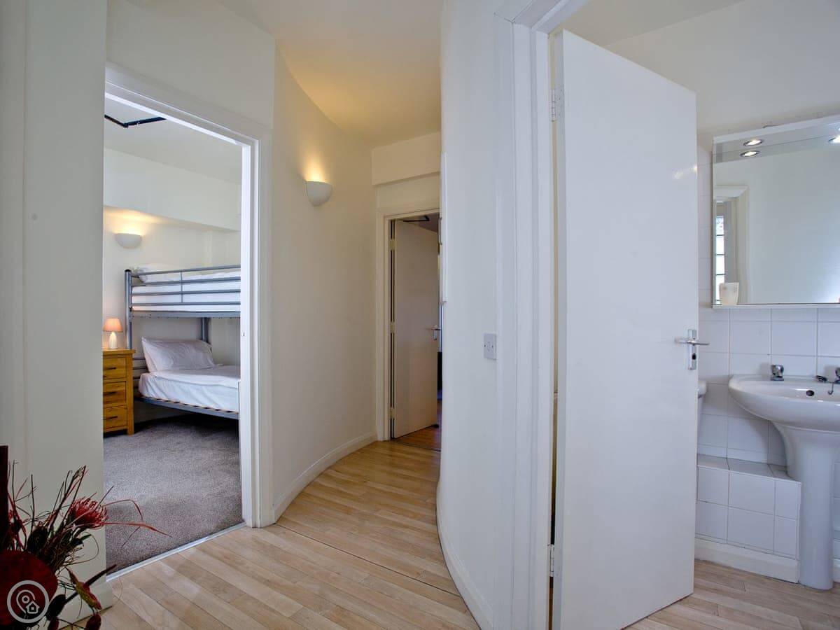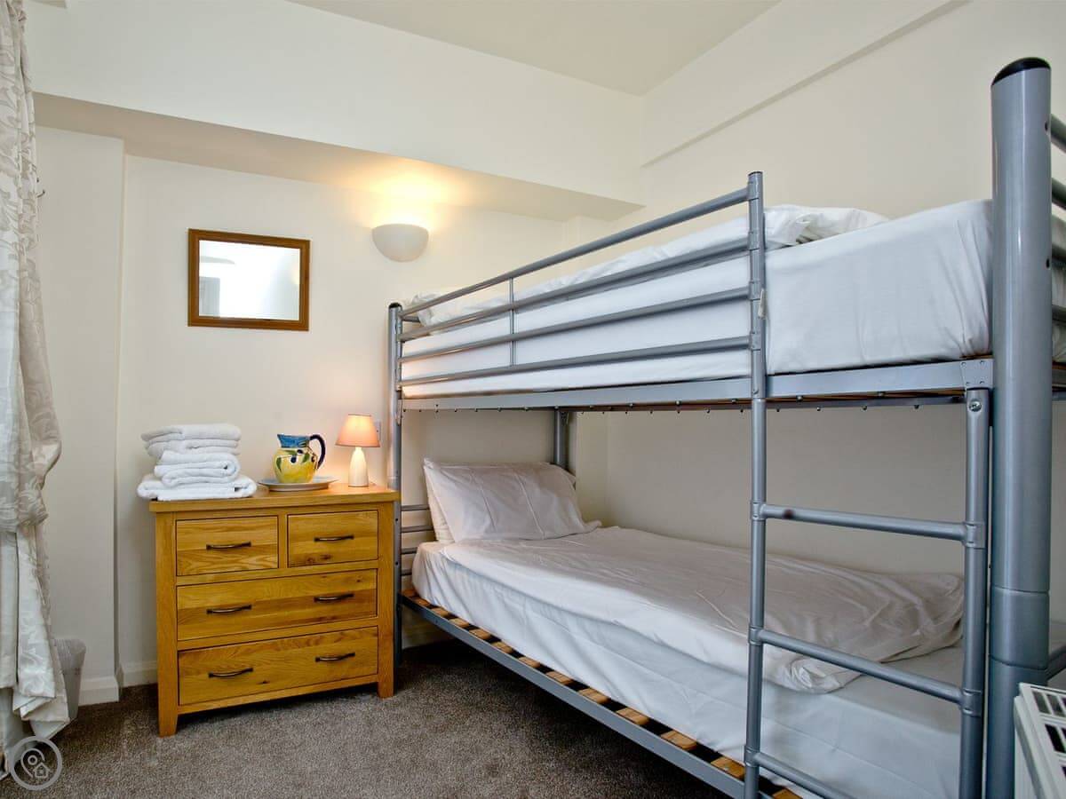 It sleeps four. There are two bedrooms. One is a double with a shower room attached. The other has bunk beds. There's a second bathroom as well.
