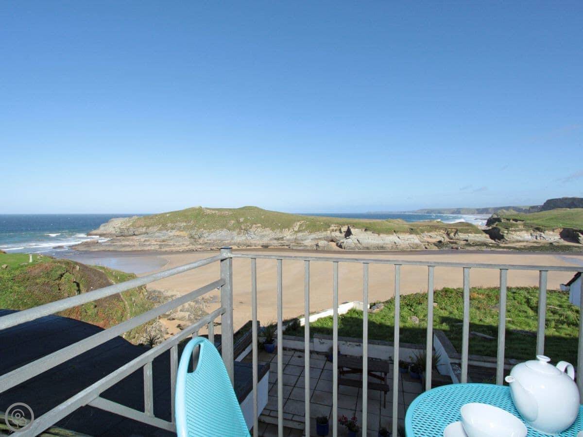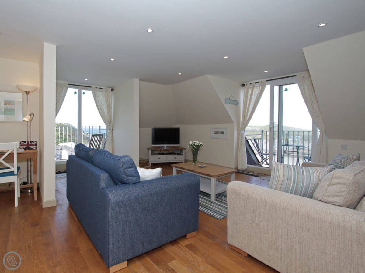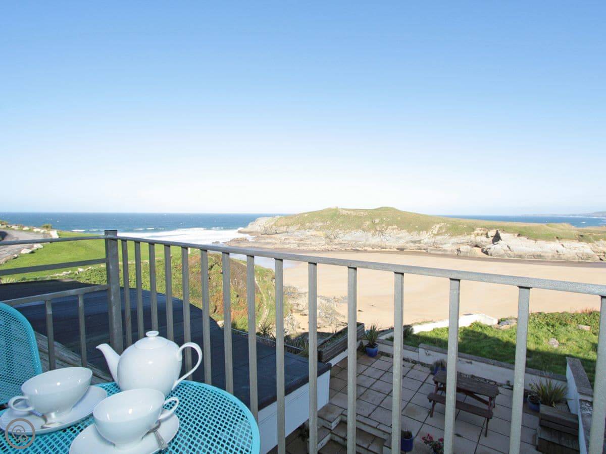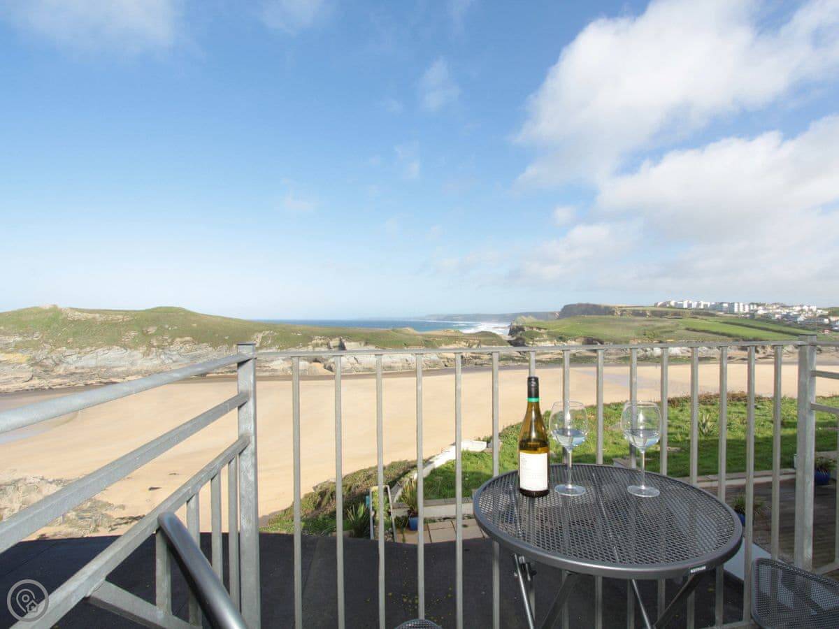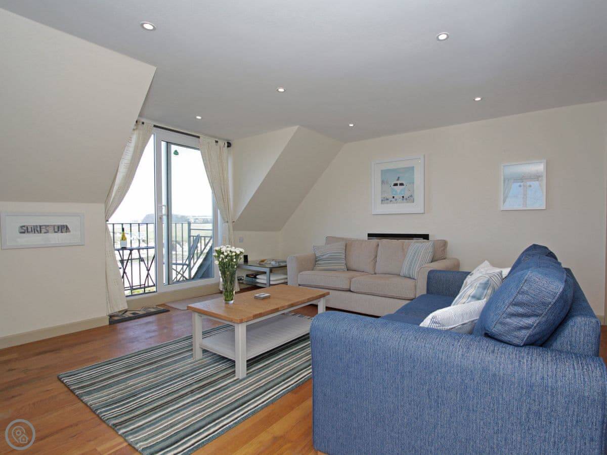 7 Glendorgal Sands is a reverse level end terrace apartment spread over three floors. The property makes the most of its elevated position with stunning views across Porth Beach and out to sea.