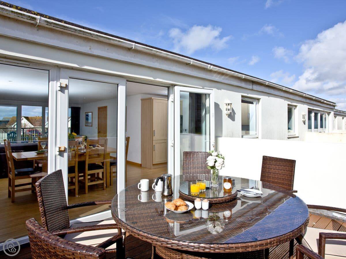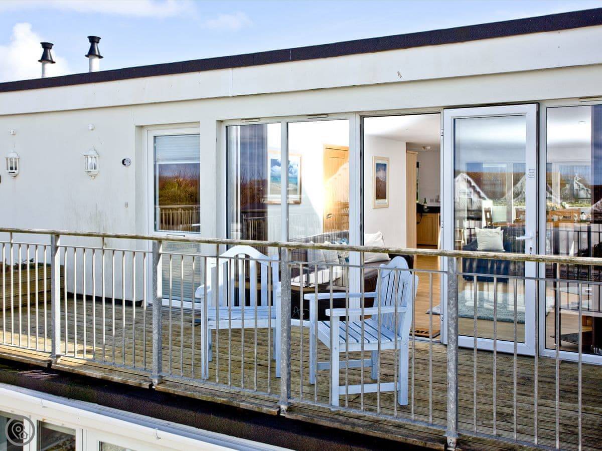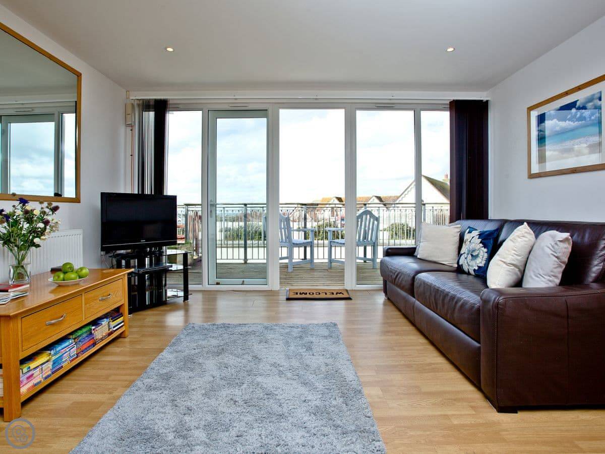Sea Glimpses is a flat in Porth, just outside Newquay. It's a mid-terrace place in a big gated estate on the headland. You can see bits of the sea from the windows, hence the name.