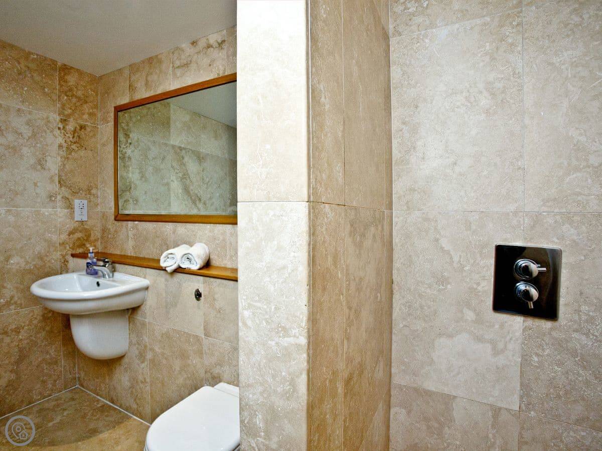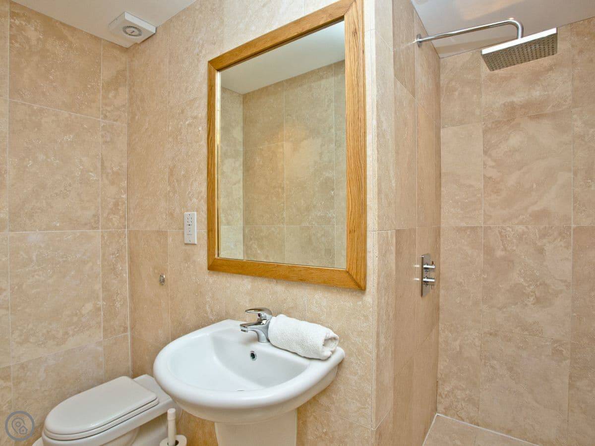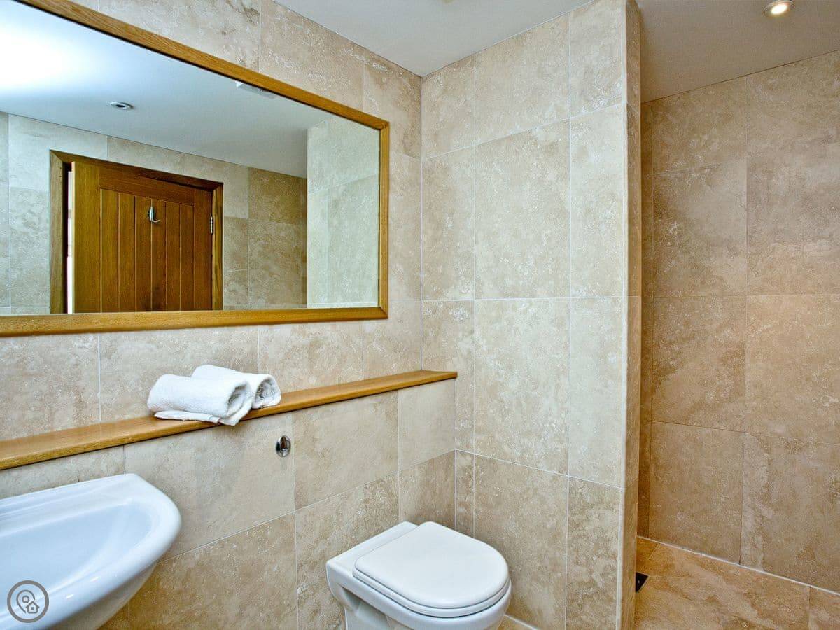 Facilities: it's got a dishwasher, washing machine, WiFi, and parking for one car. There's a cot and highchair. You can bring up to two dogs. The bathrooms have walk-in showers or baths.