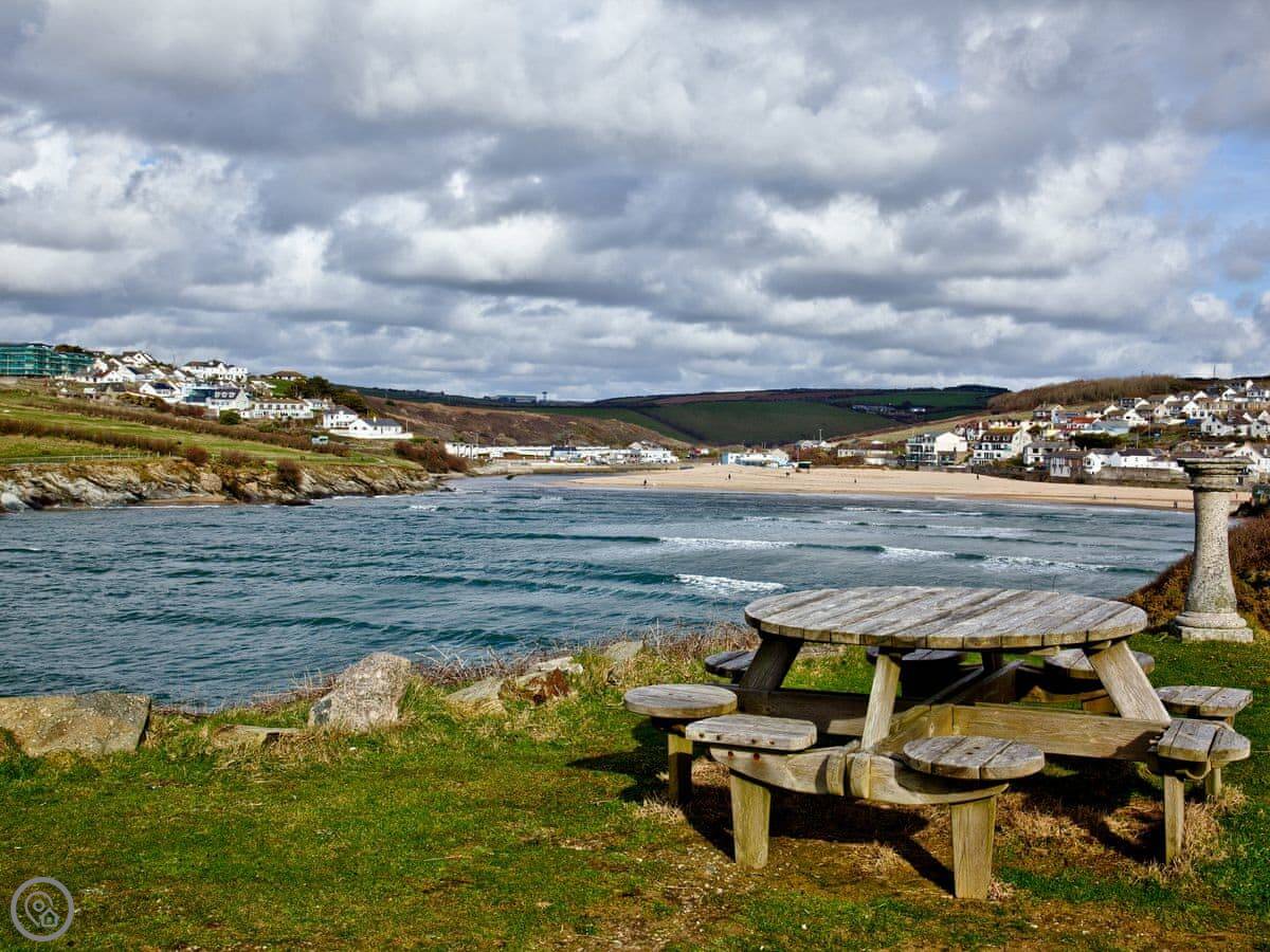 The location is the main thing. The estate has its own bit of headland. At low tide, you can get down some rocky steps from there directly onto Porth beach. It's a nice, sheltered beach, good for families.