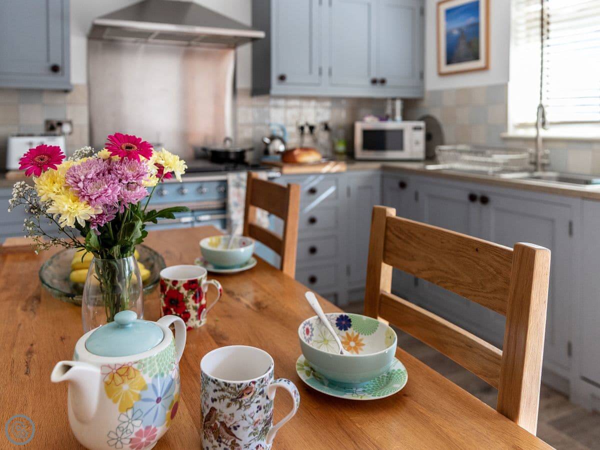 Inside, there's a wood burner in the living room. The kitchen has a Lacanche range cooker if you like to cook. The WiFi works fine. A stable door opens to a small courtyard at the back. There's a lawned garden at the front where you can sit.