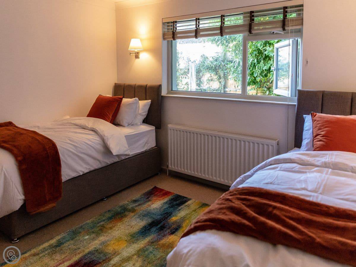 It sleeps four. Two bedrooms, one bathroom. It has a 4 Star rating. The master bedroom has a very large bed. The second room has two single beds that can be joined together if you prefer.