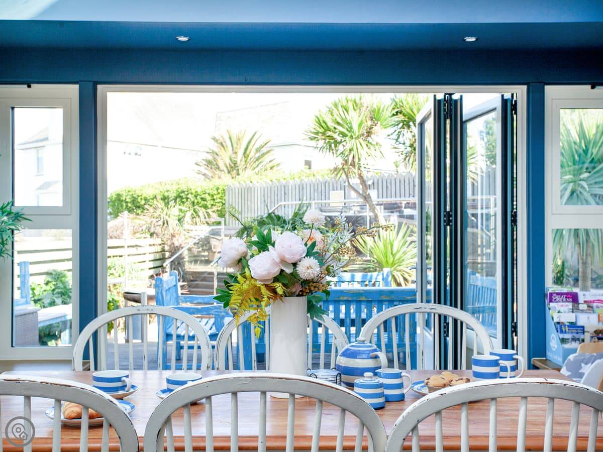 Newquay town centre is close by for shops and cafes. Newquay Golf Club is right on the headland. For a wider trip, you're well-placed for the whole north coast. Padstow is about half an hour's drive. The National Trust has several coastal properties nearby, like Trerice.