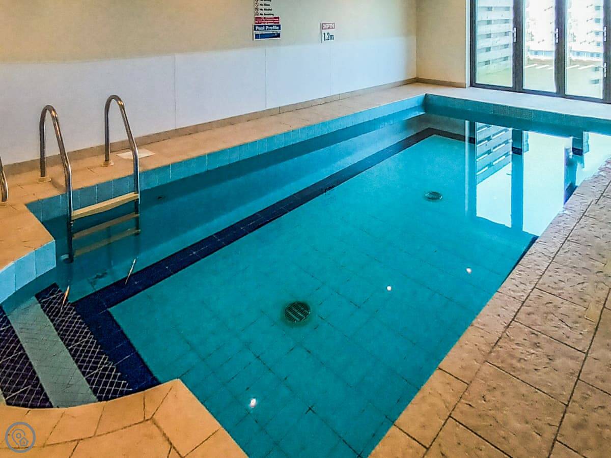 On-site, there's a shared indoor swimming pool and a gym you can use. The apartment has its own WiFi, a washing machine, and a dishwasher. A cot is available if you need one.