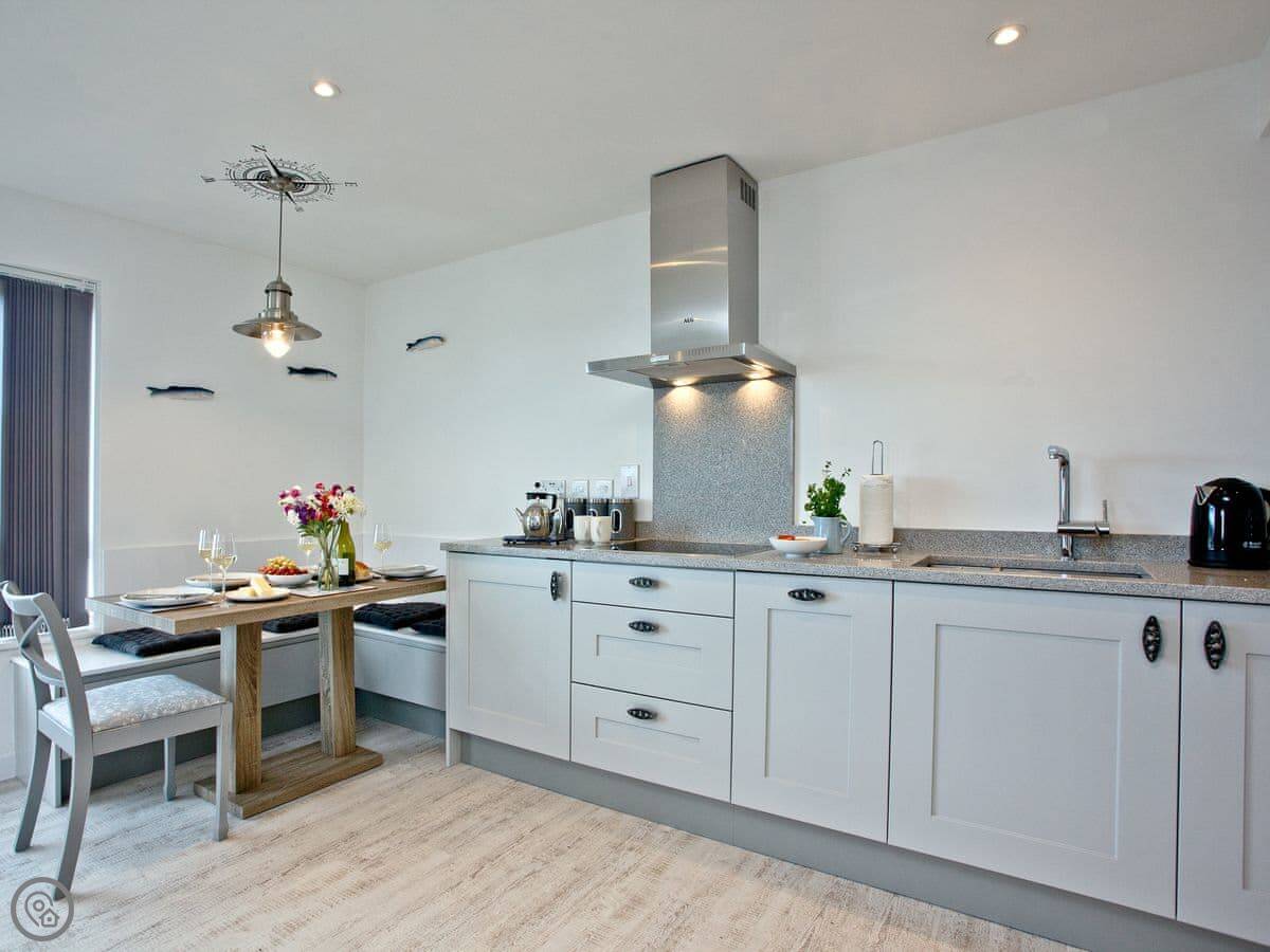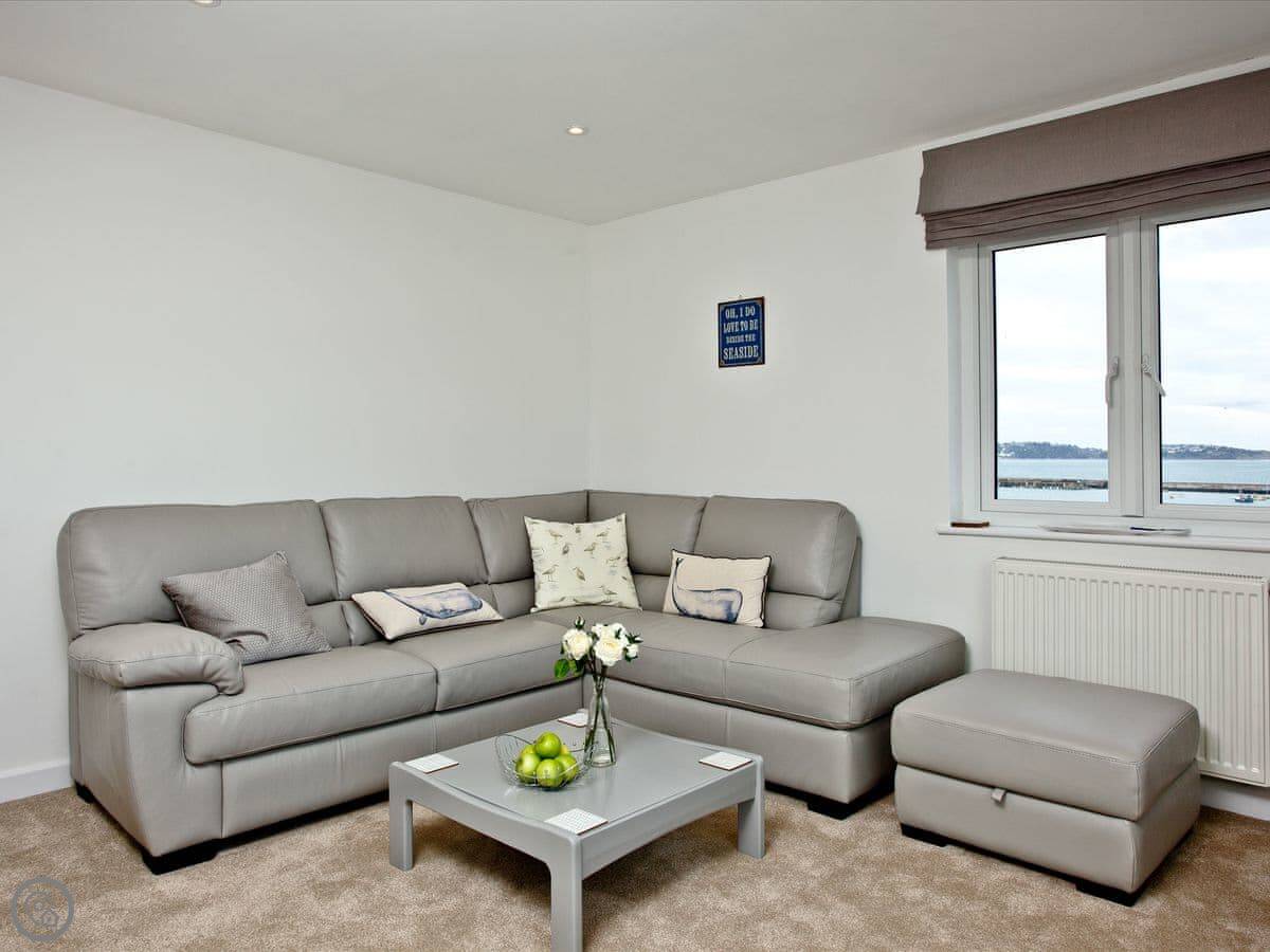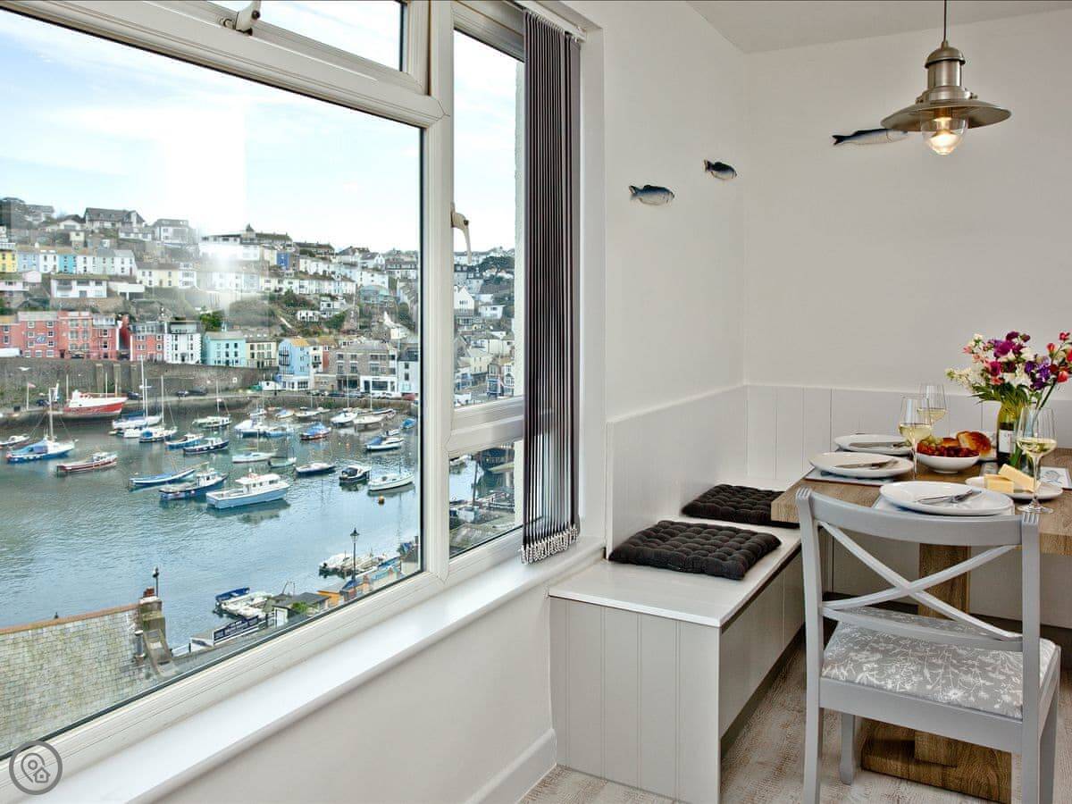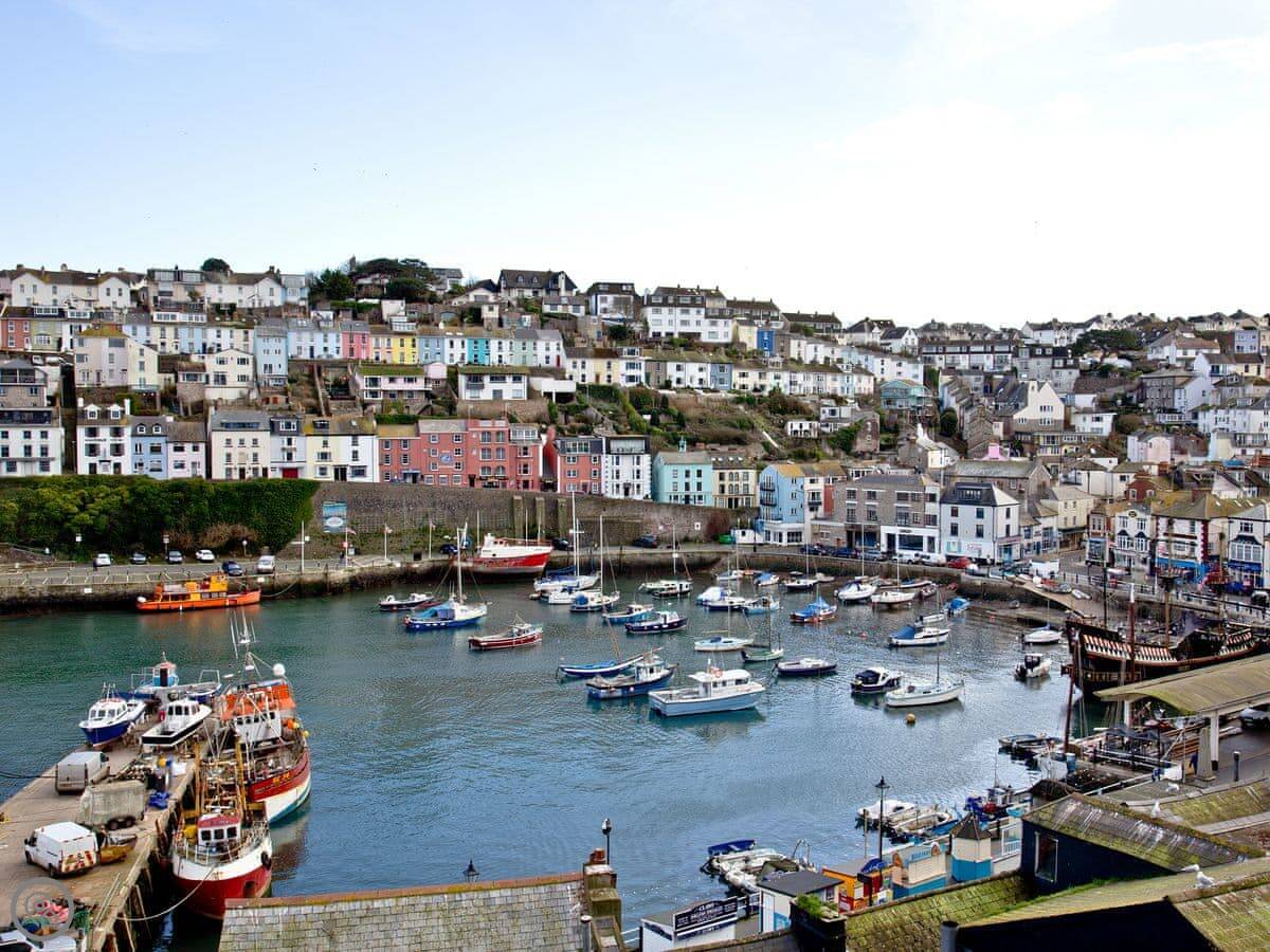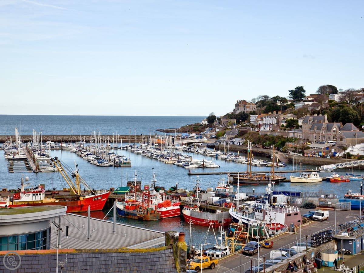 You're right in the town. The harbour itself is about a two minute walk. The shops, fish and chip stands, and pubs are all on your doorstep. Breakwater Beach is a five minute walk along the harbour wall. You can watch the ferries going over to Torquay from there.