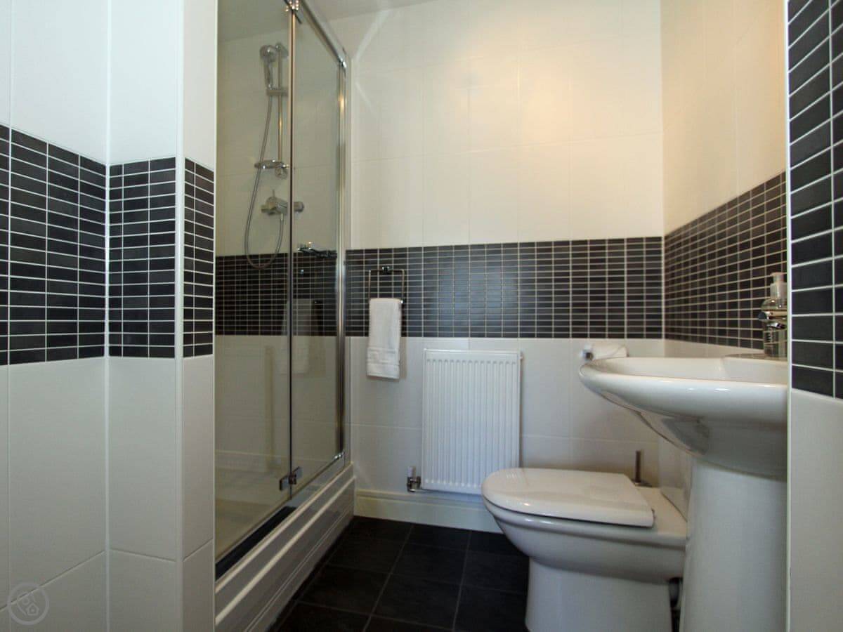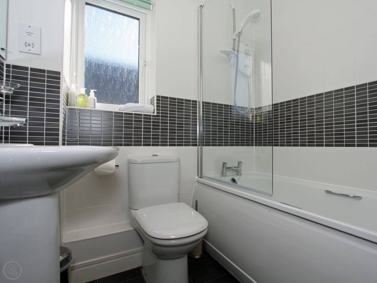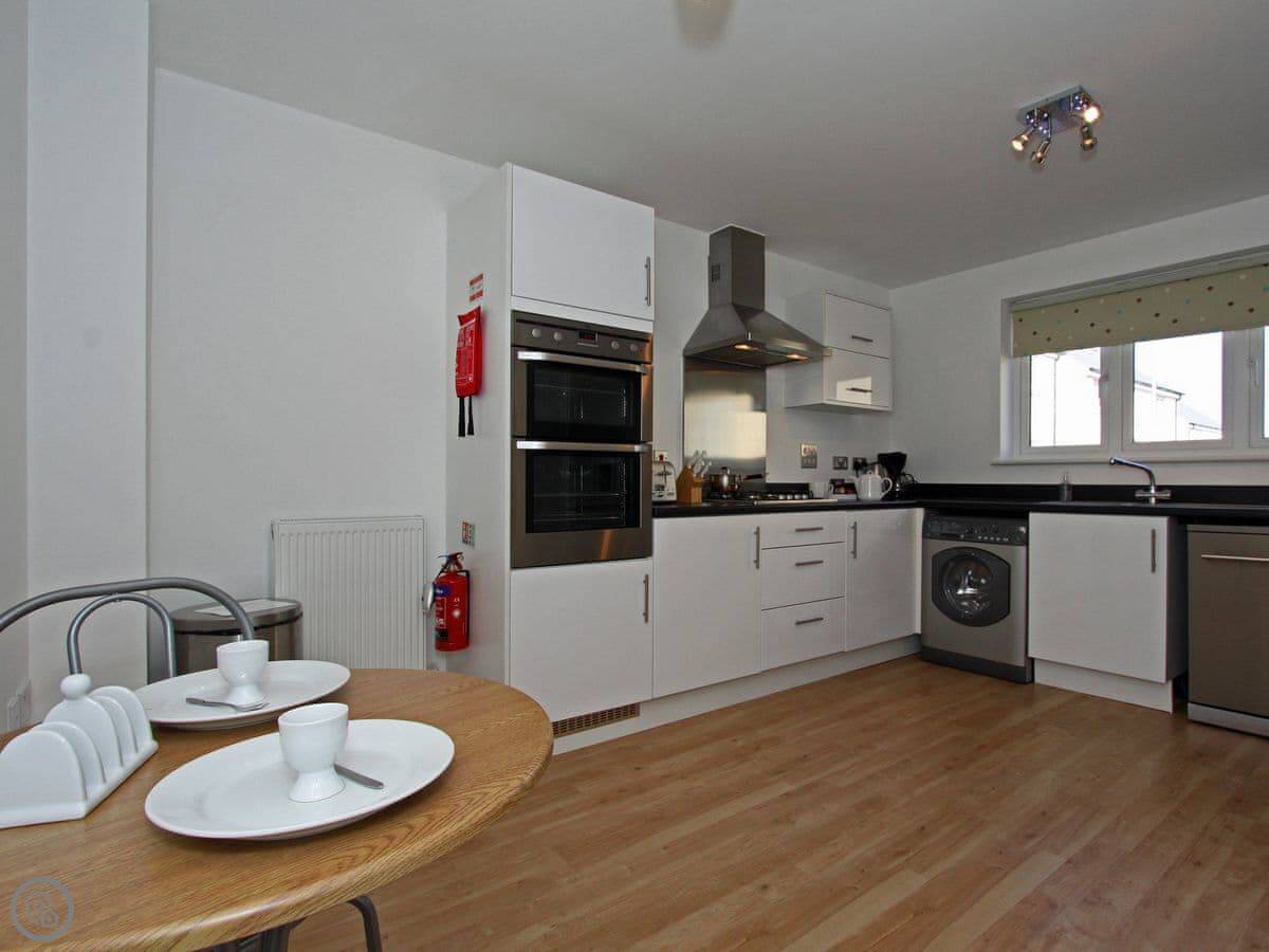 Inside, there's a dishwasher, WiFi, all the usual things. There's a cot and a highchair if you've got small children, and a stairgate at the bottom of the stairs.