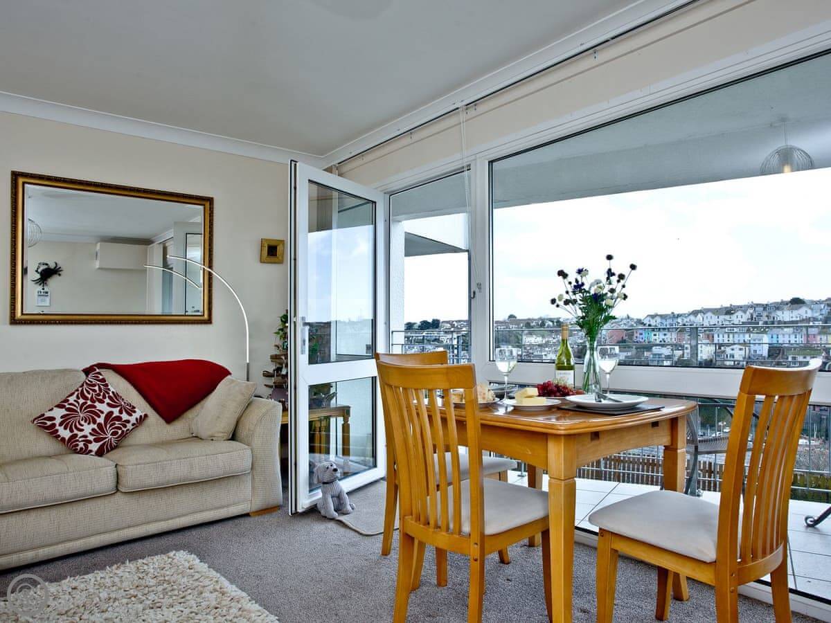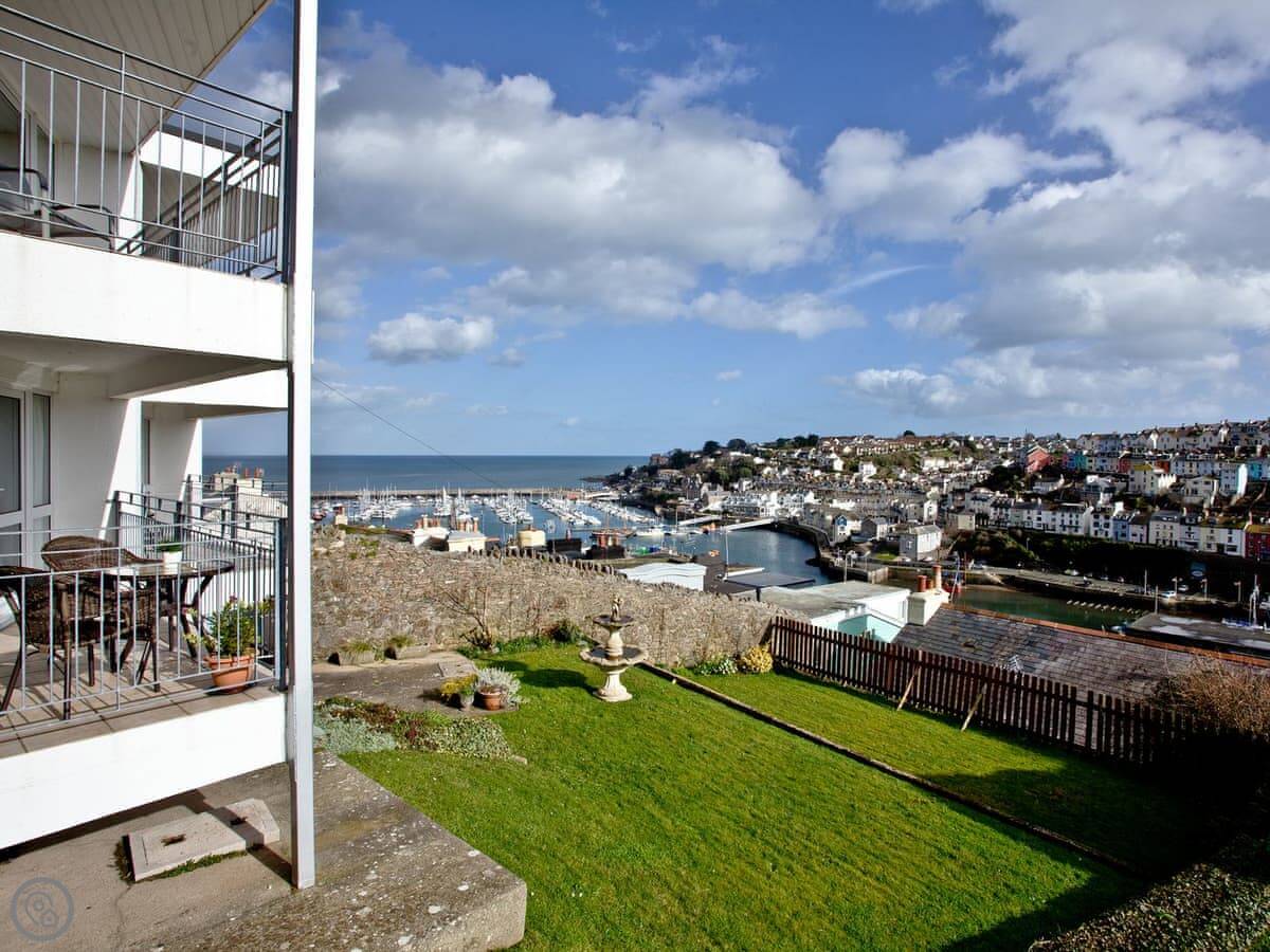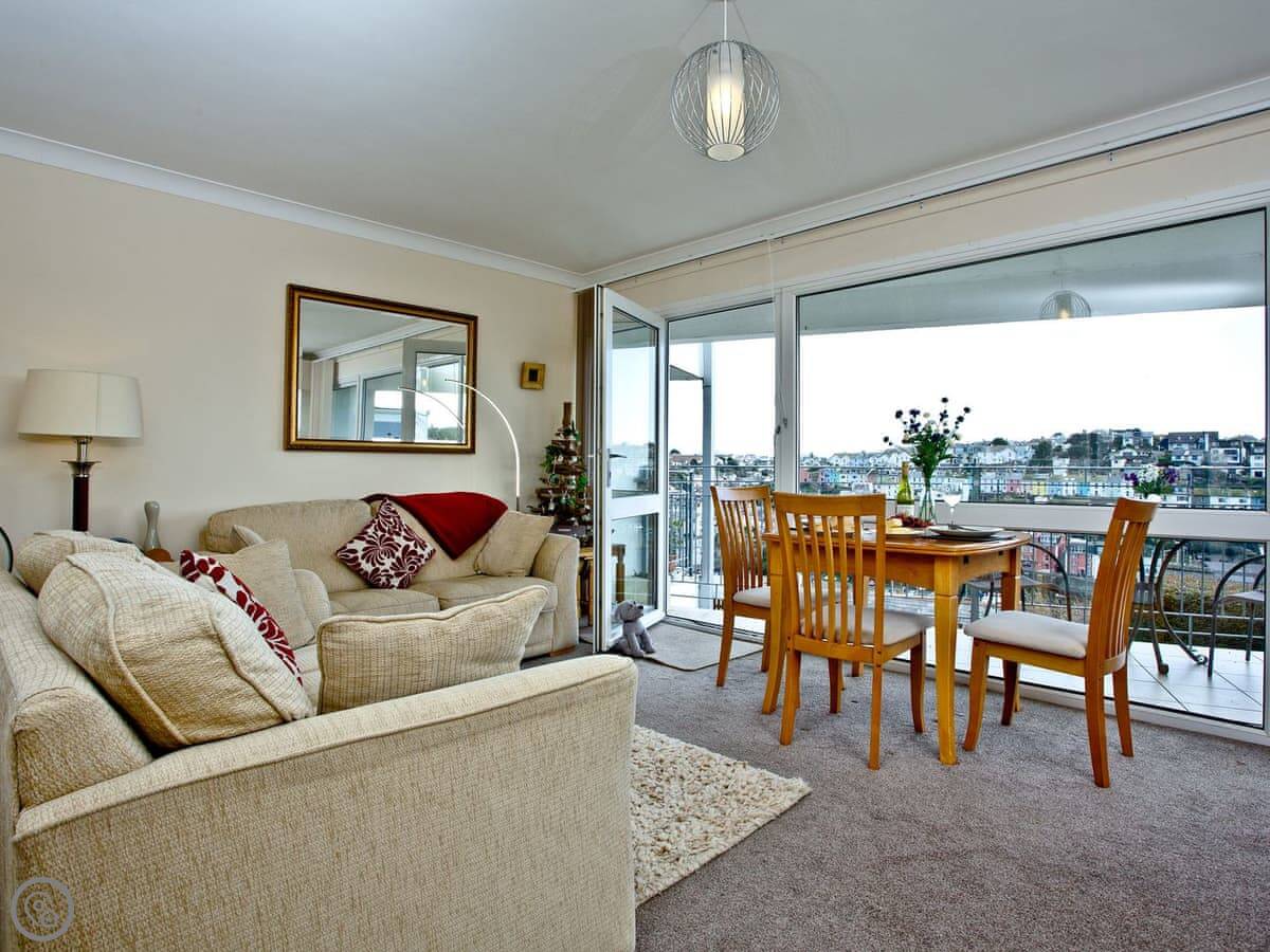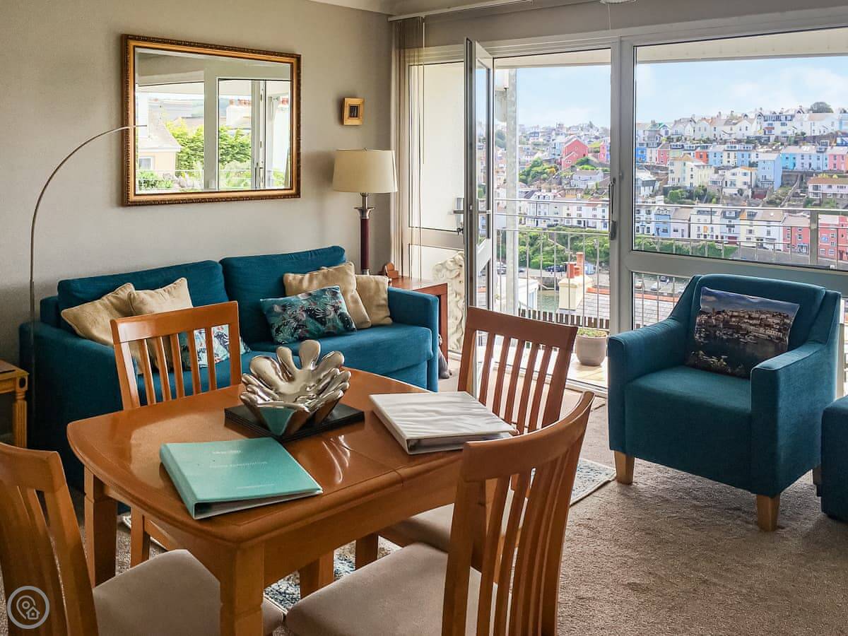 The main thing is the view. You look straight out over the harbour and across Torbay. The living room and the private balcony both face it. You can sit out there with a coffee.