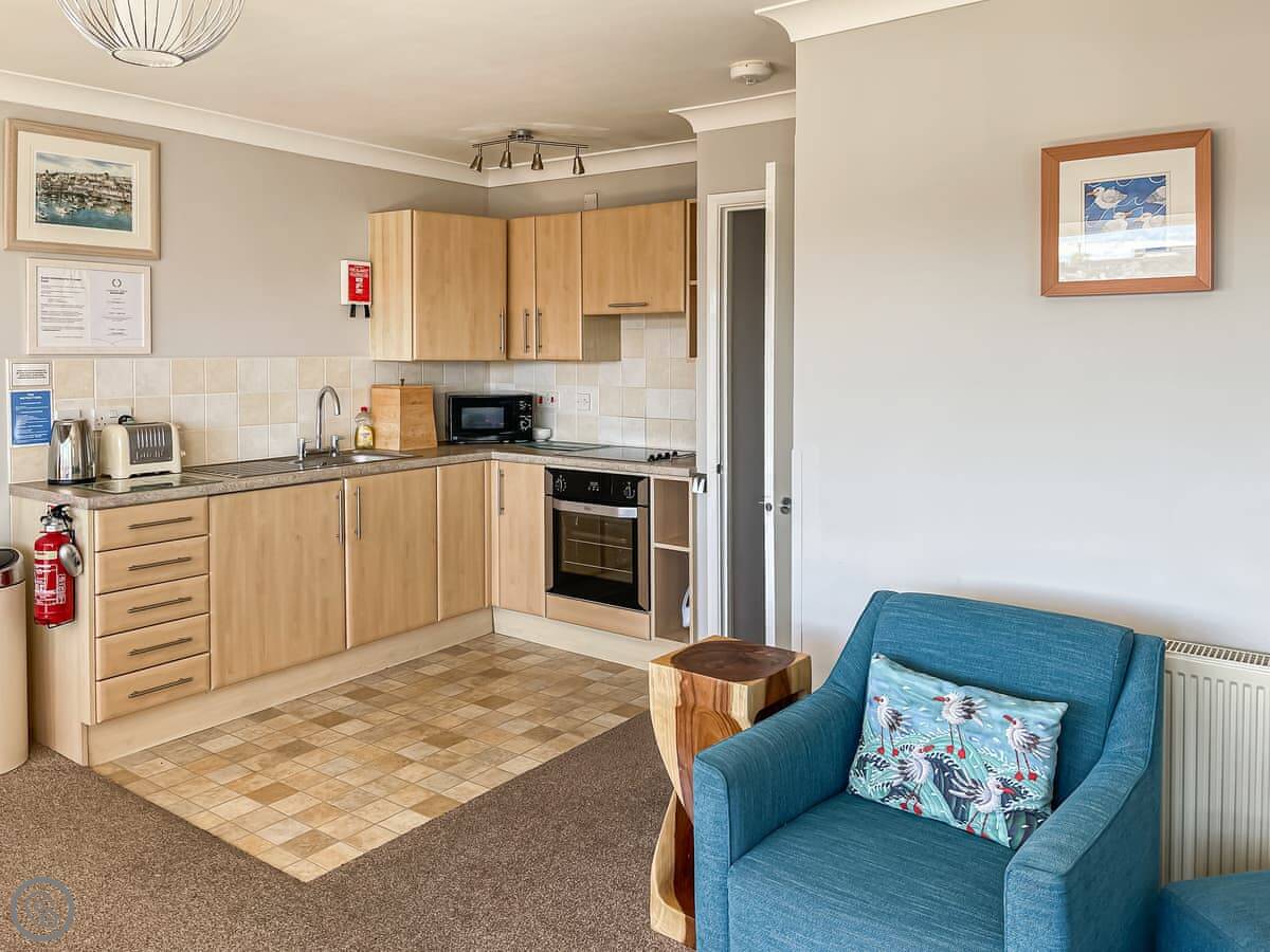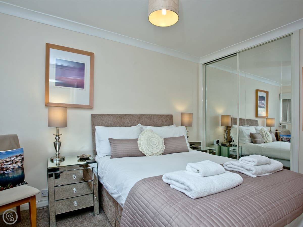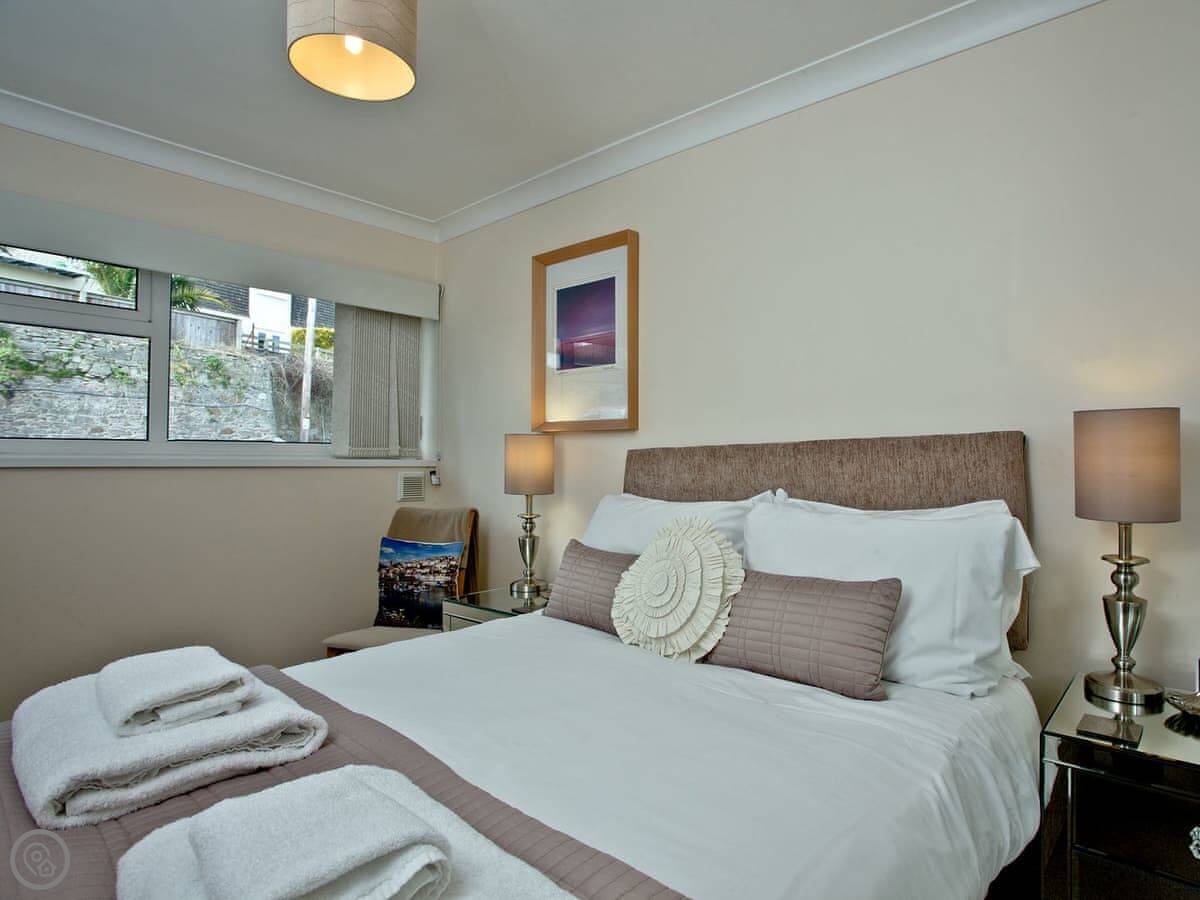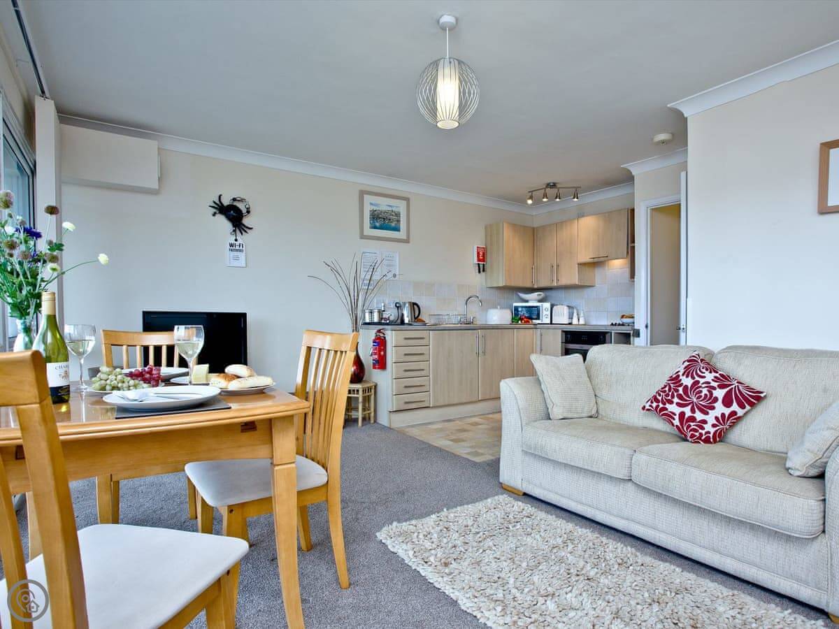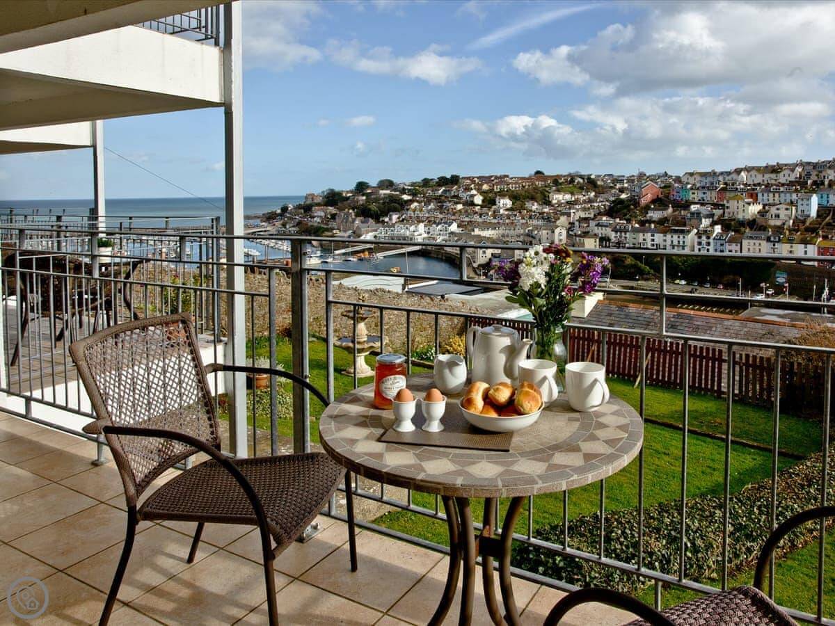 The main thing is the view. You look straight out over the harbour and across Torbay. The living room and the private balcony both face it. You can sit out there with a coffee.