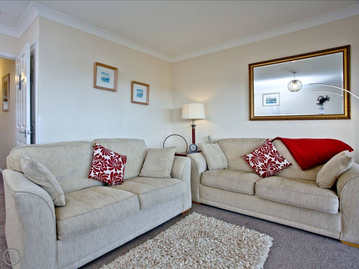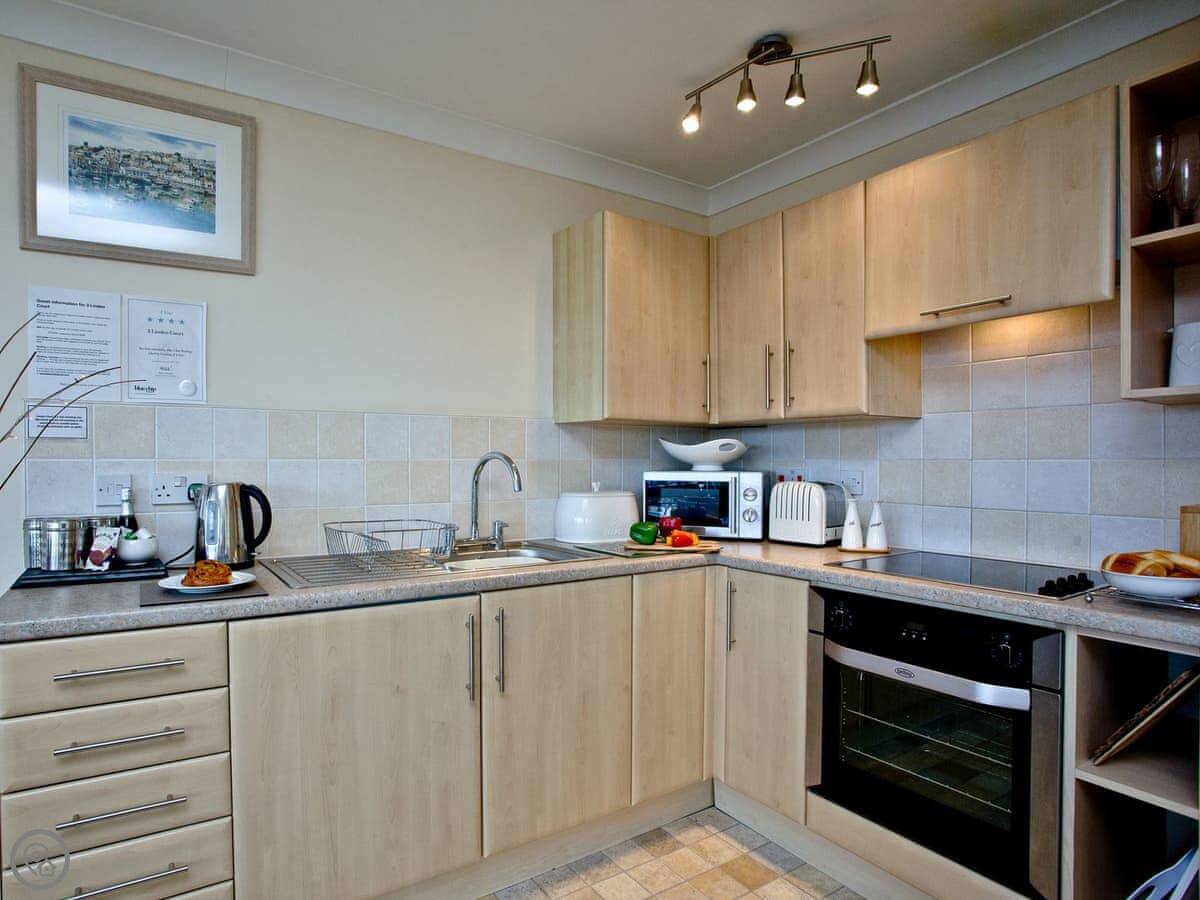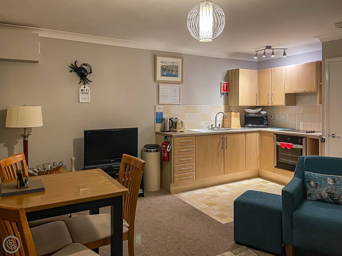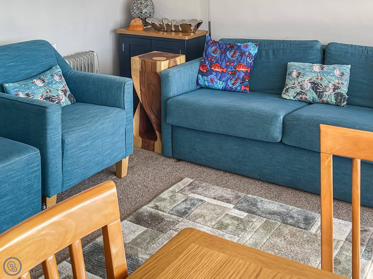 The main thing is the view. You look straight out over the harbour and across Torbay. The living room and the private balcony both face it. You can sit out there with a coffee.