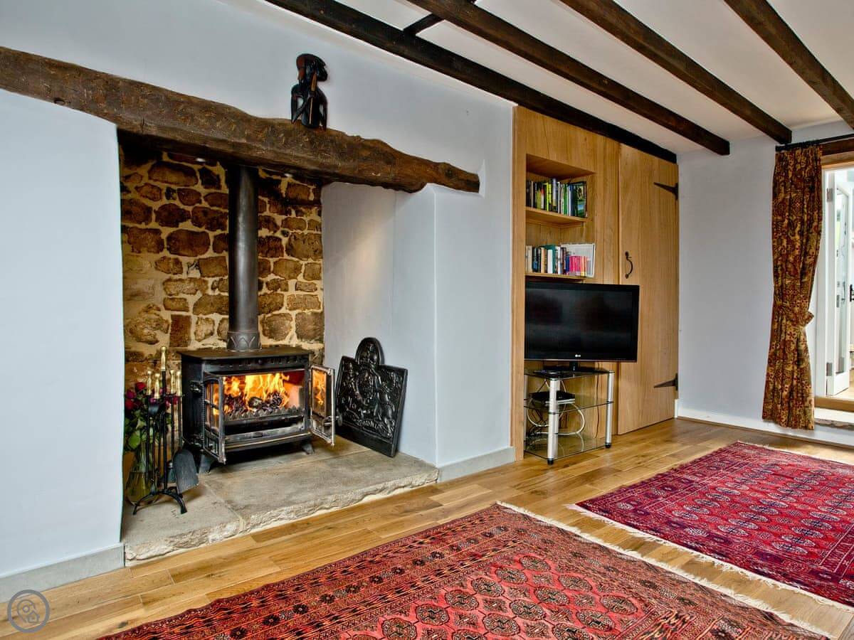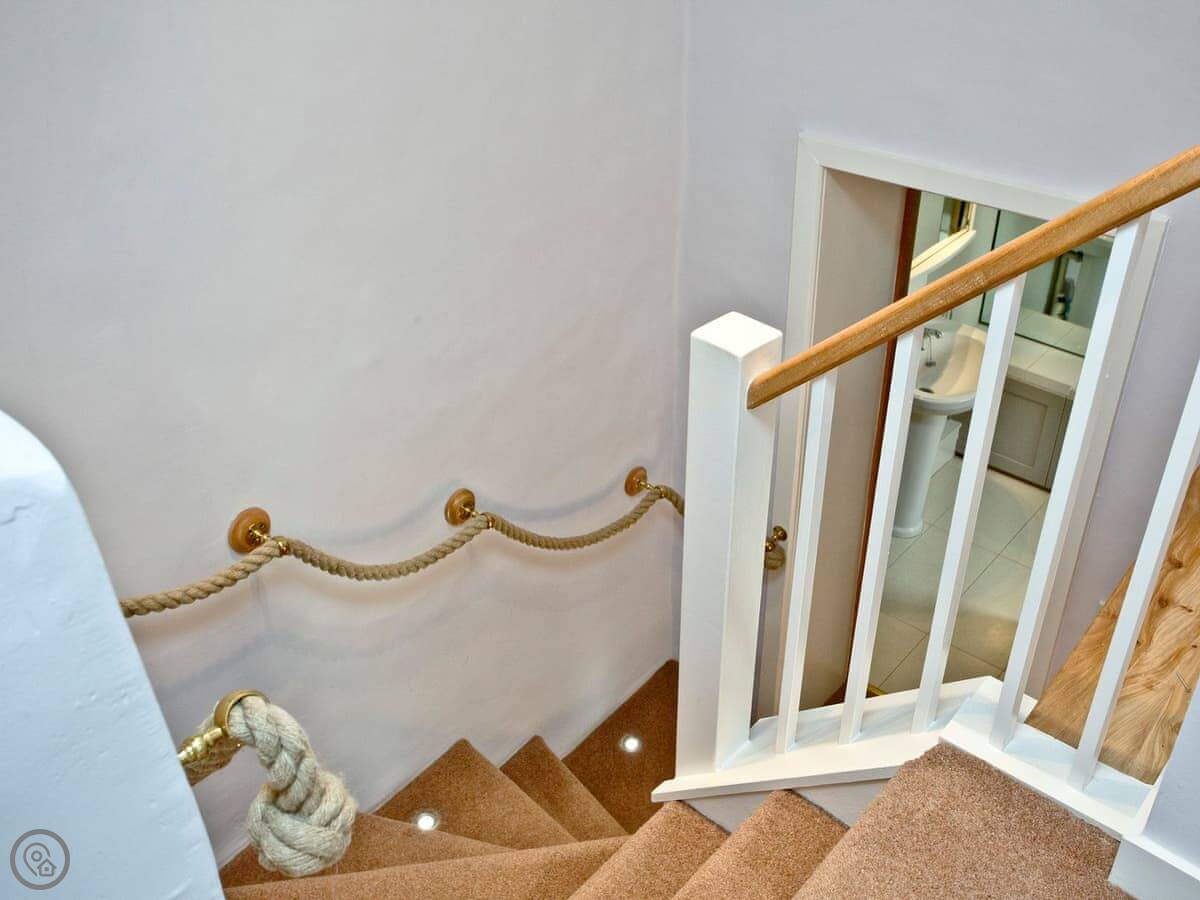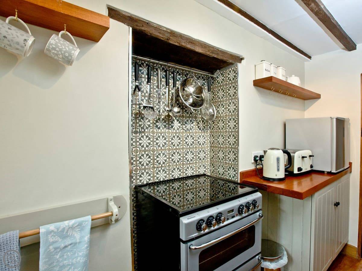 The kitchen is small but it works. There's a woodburning stove in the sitting room. The stairs are cottage stairs, so they're a bit steeper than modern ones.