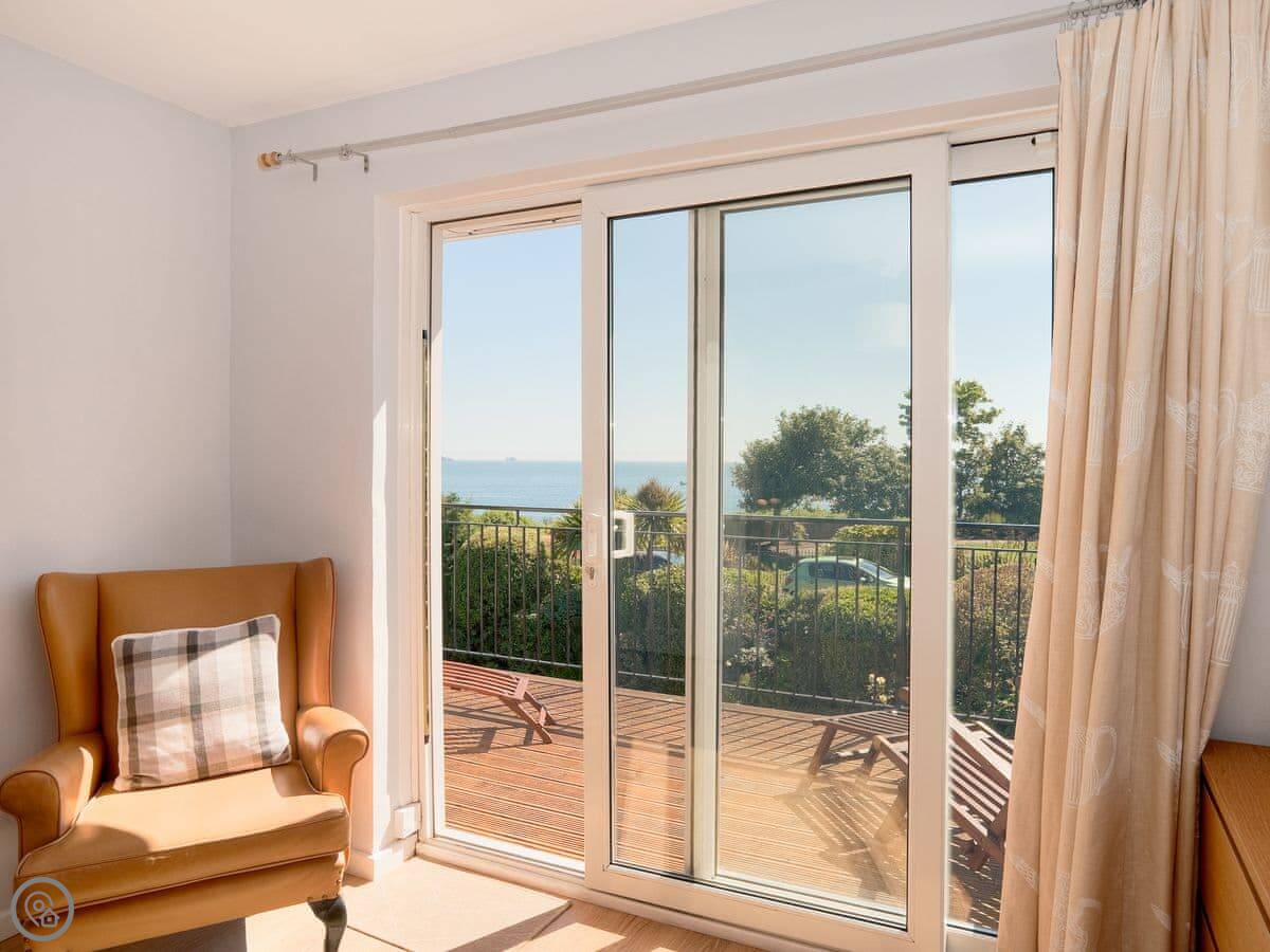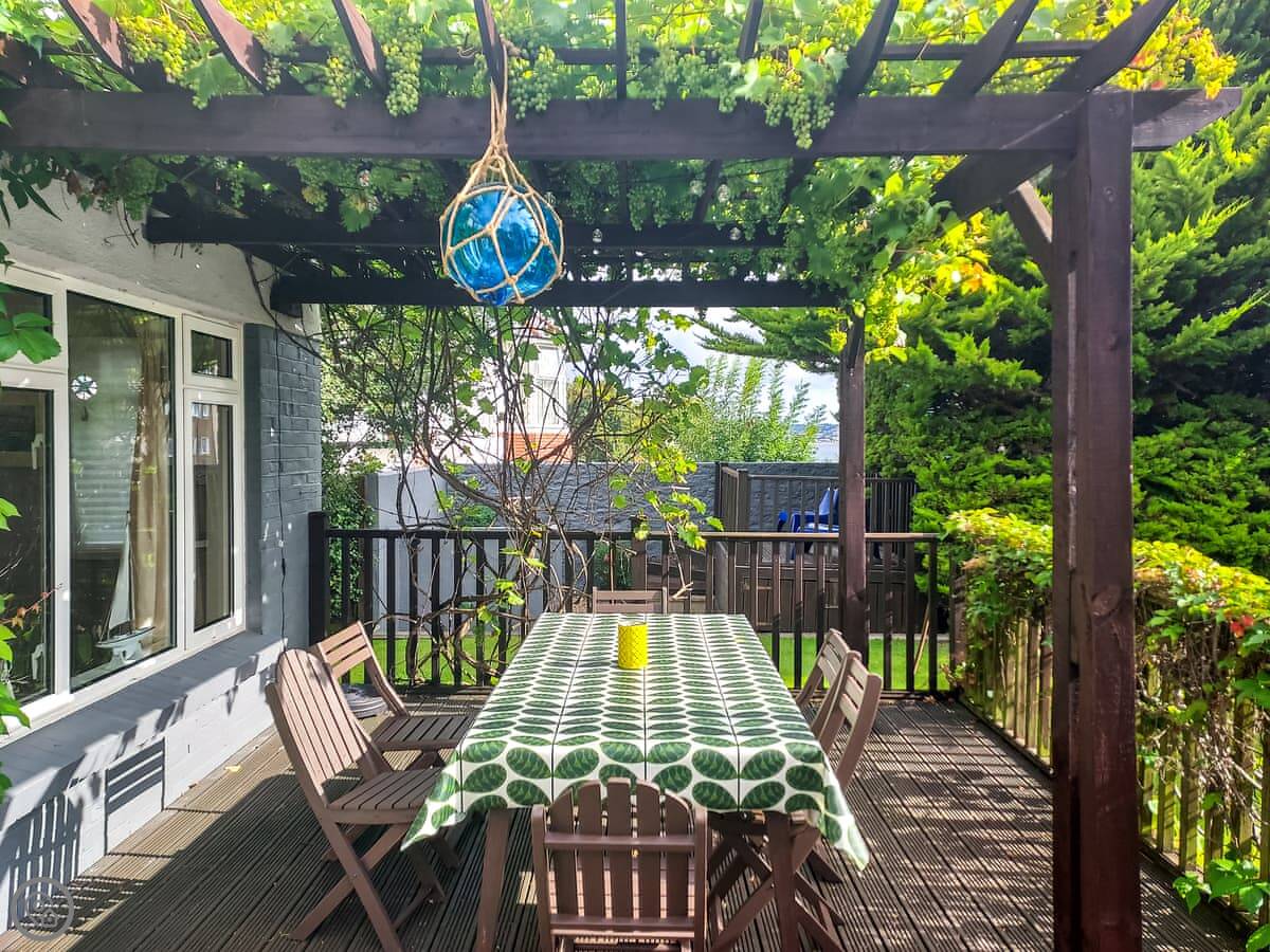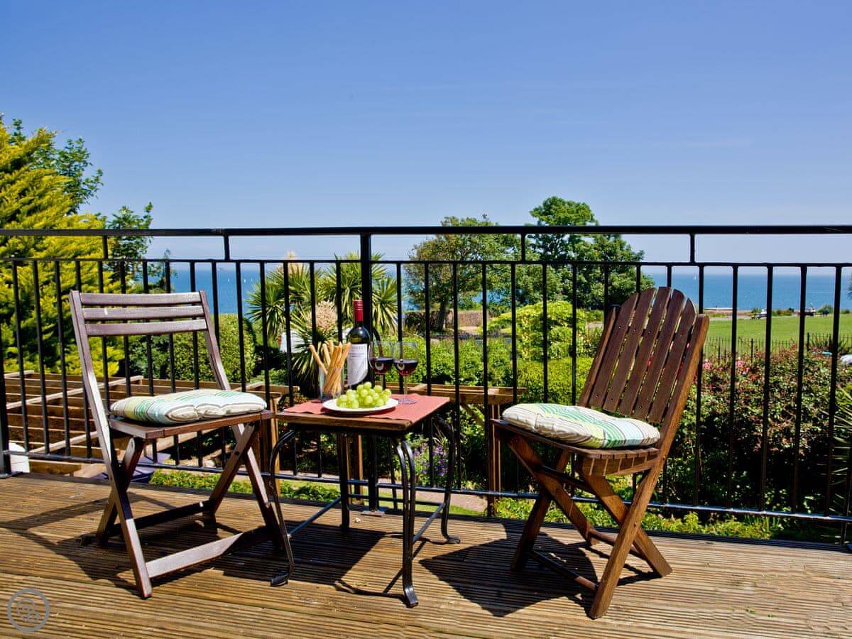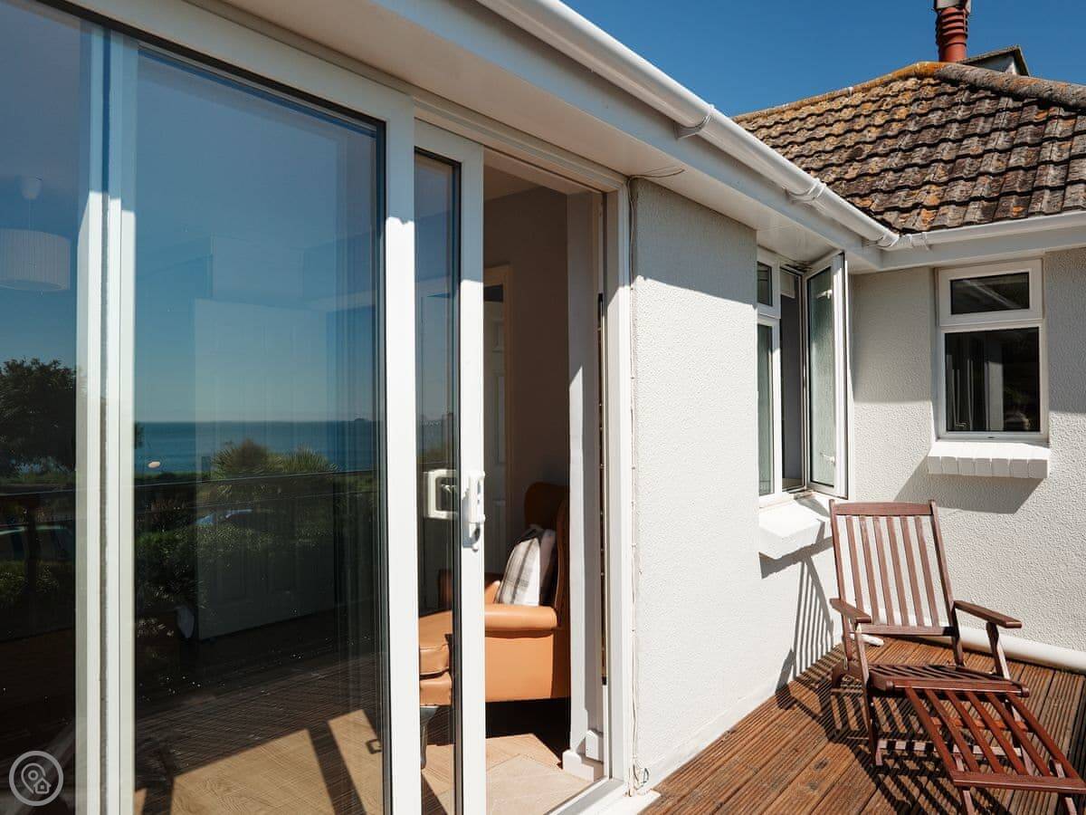 It sleeps six. Three bedrooms, two bathrooms. It's got a 4 Star rating. It's modern inside, recently done up. The kitchen has what you need. The garden is a good size, fully enclosed, with a patio and furniture. There's a balcony off the main bedroom that looks out to sea.