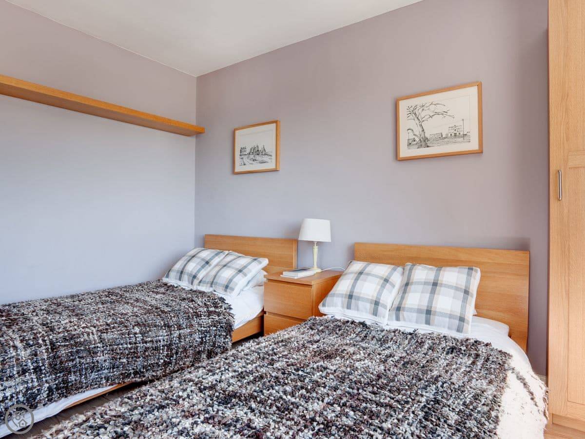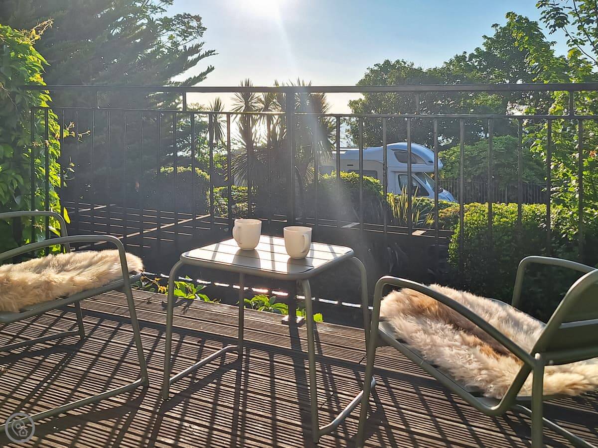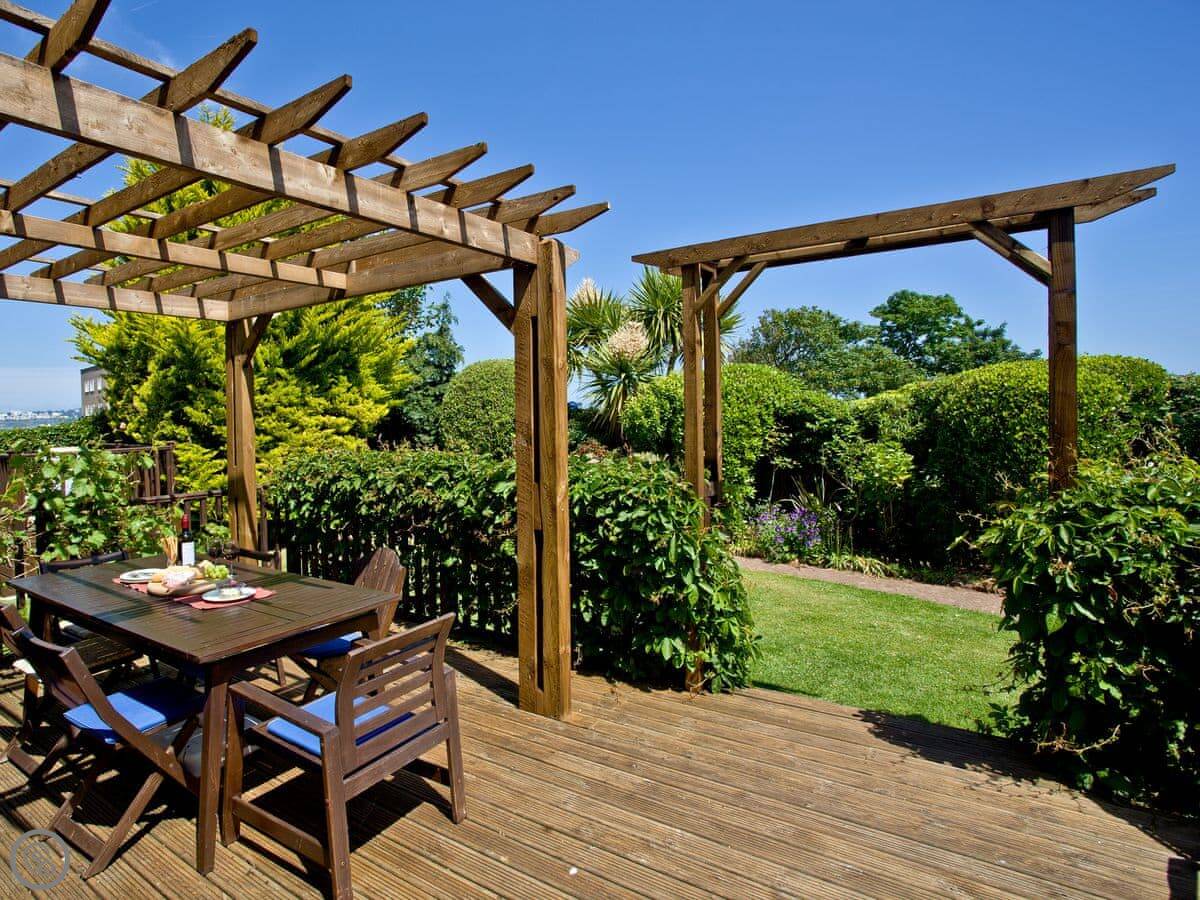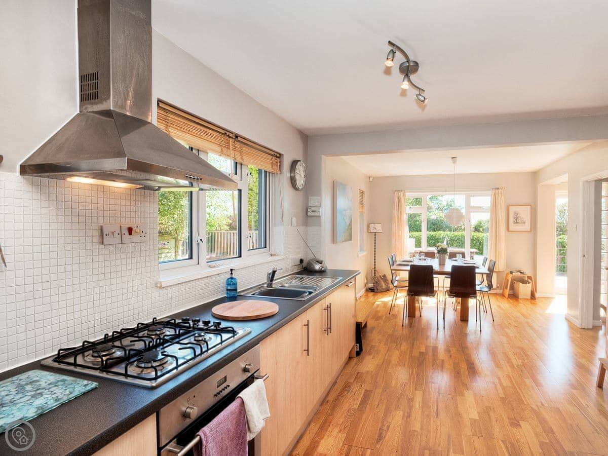 It sleeps six. Three bedrooms, two bathrooms. It's got a 4 Star rating. It's modern inside, recently done up. The kitchen has what you need. The garden is a good size, fully enclosed, with a patio and furniture. There's a balcony off the main bedroom that looks out to sea.