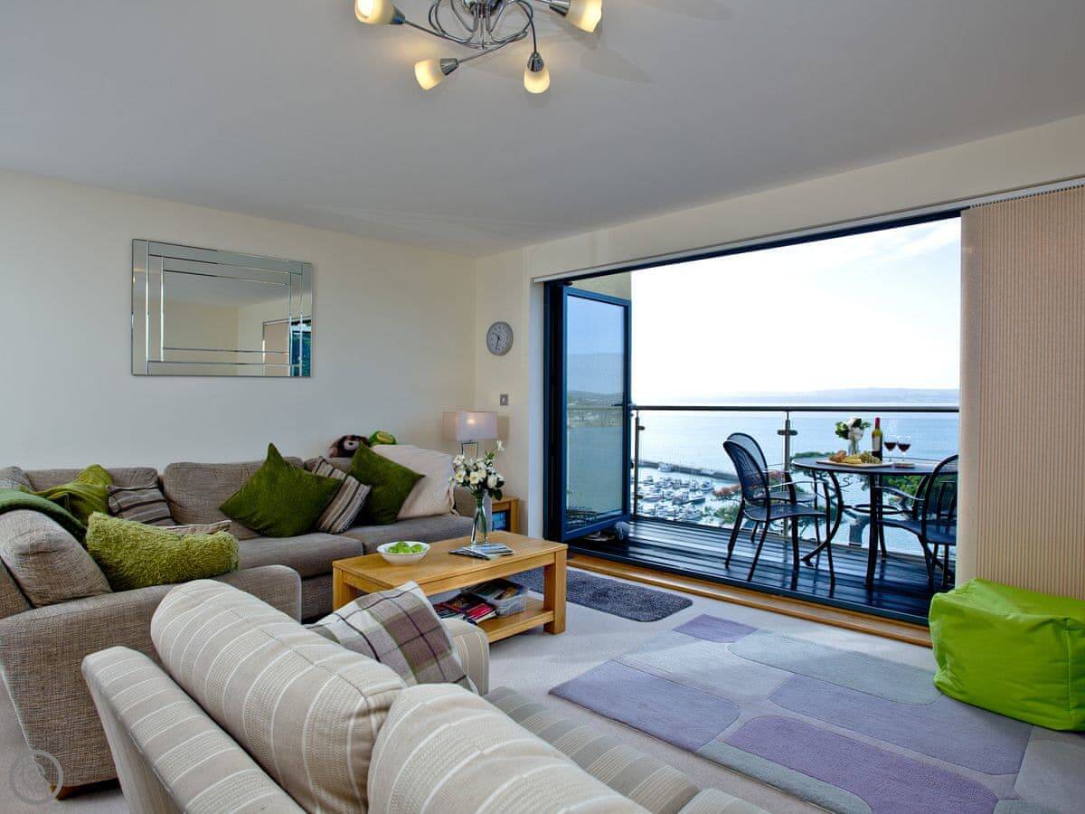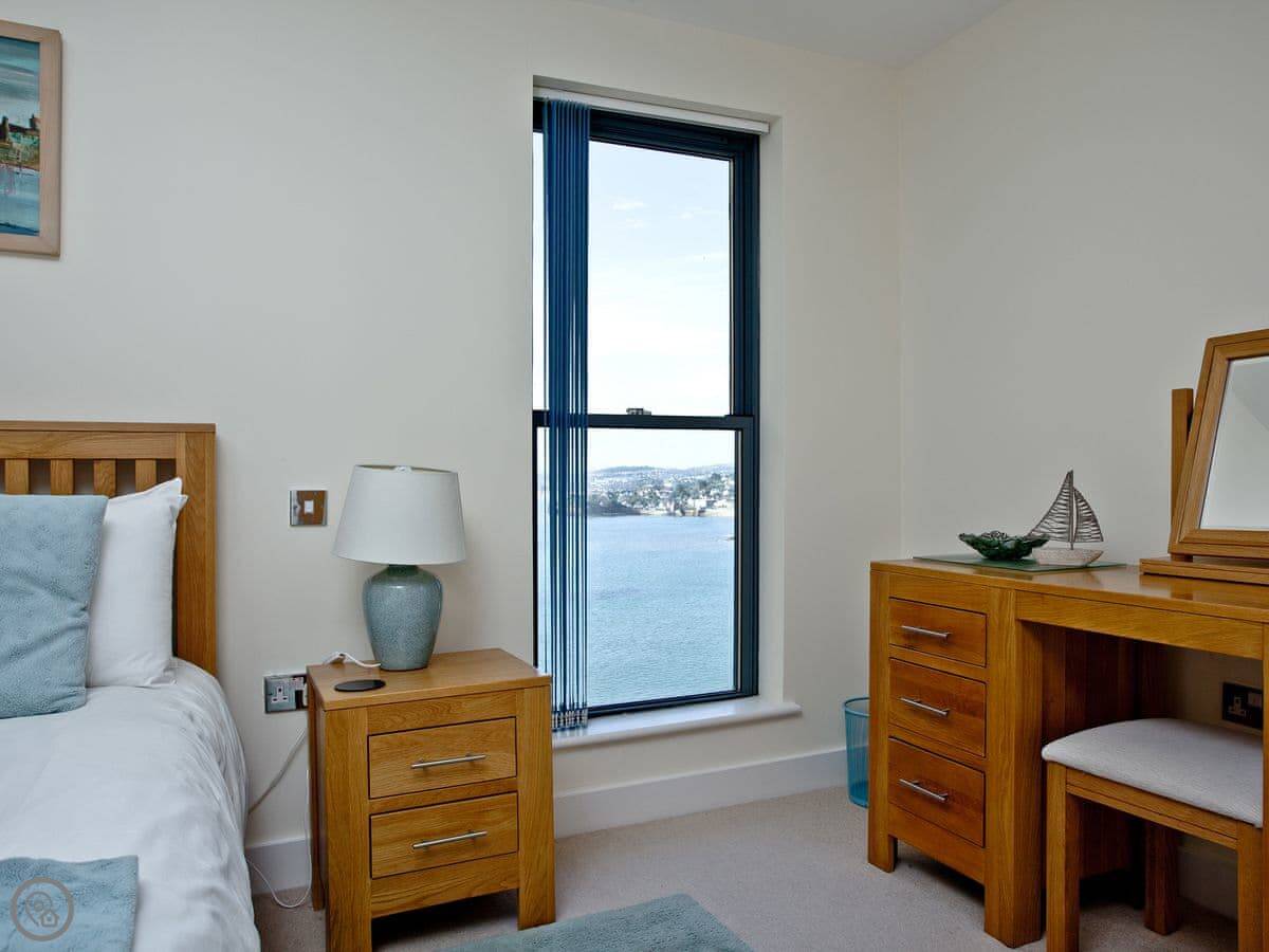 Harbreck Heights is a first floor apartment on the edge of Torquay. It’s part of a modern block. The main thing is the view. You’re up high, so you look straight out over the marina and the bay. You can see the boats coming and going.