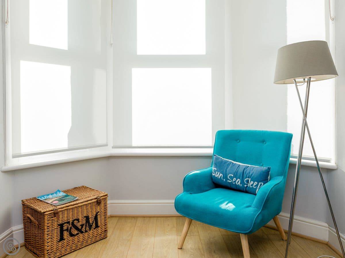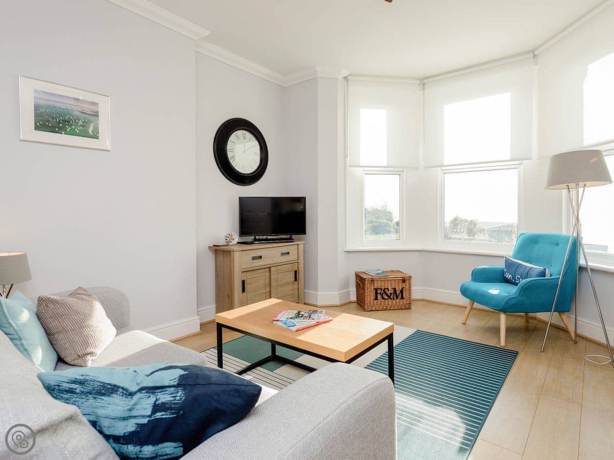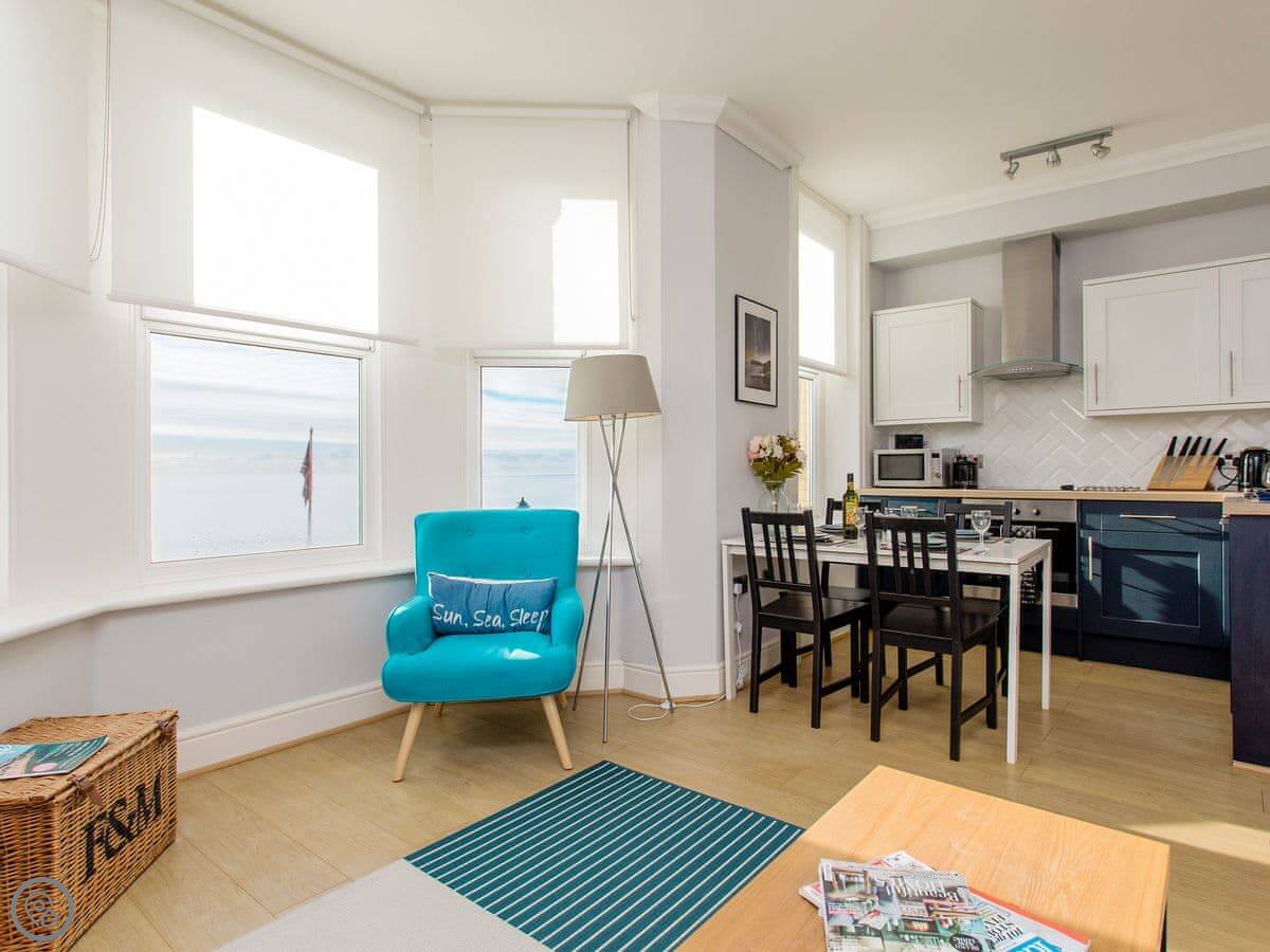 The main thing is the view. You look straight out over the sea. It's a proper sea view. You get that from the living room and one of the bedrooms.