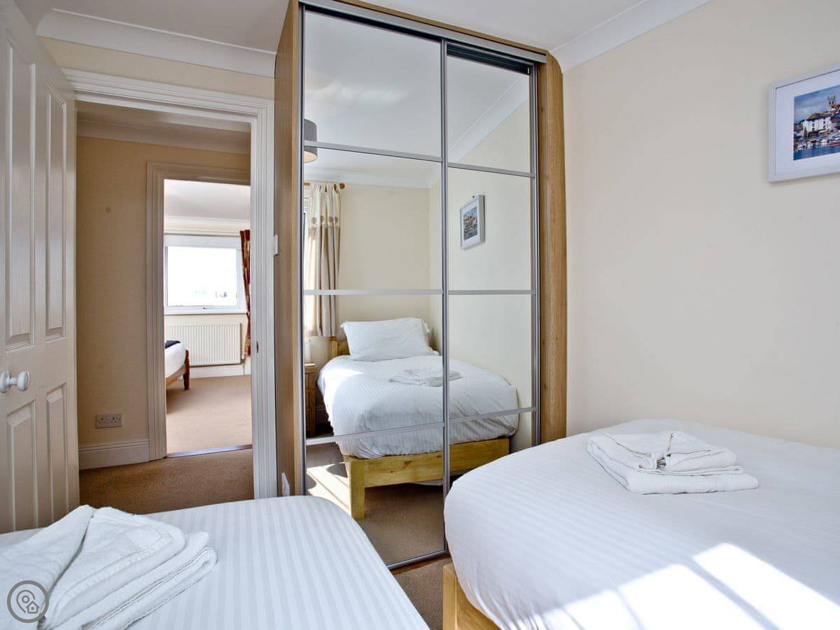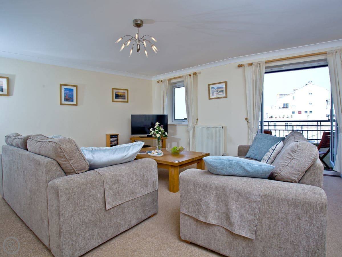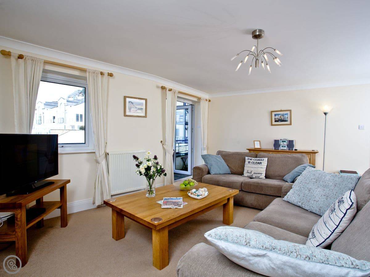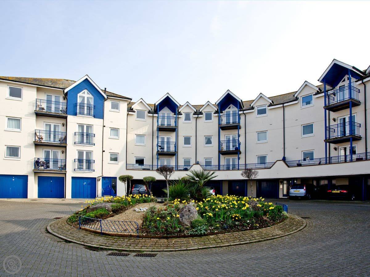 42 Moorings Reach is a first-floor apartment overlooking Brixham Marina. It's part of that crescent-shaped development you might have seen, the one that's won awards. You're set back from the actual waterfront, so it's quiet, but you still get the view of all the boats.