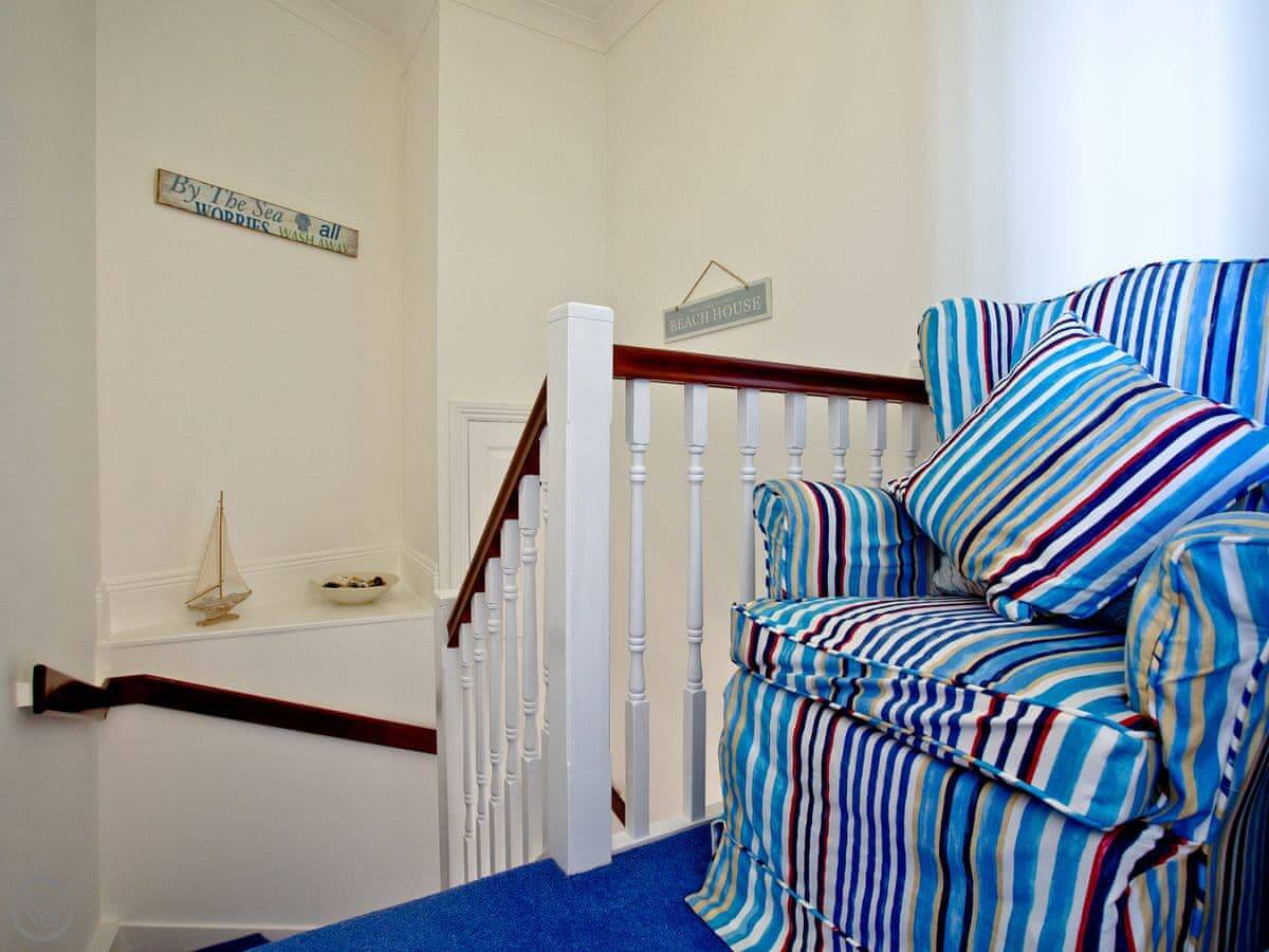 It sleeps four. Two bedrooms, one bathroom. Because it's a duplex, you've got stairs inside. They're normal stairs, not cottage steep.