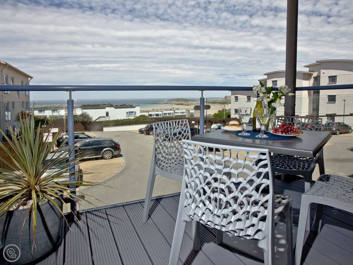 This is Fistral Escape. It's a ground floor apartment in Newquay, about a three minute walk from Fistral Beach itself. You can see the water from the balcony.