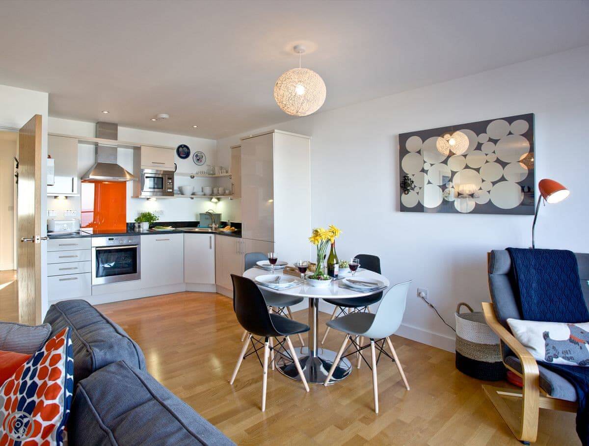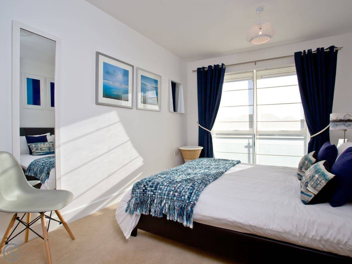 This is 42 Ocean 1. It’s a flat on the second floor of a modern block on Pentire in Newquay.