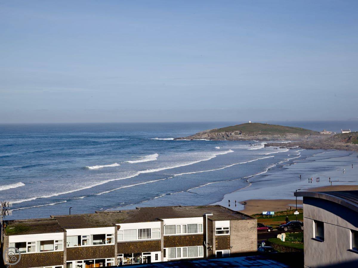 Location wise, you’re right on the headland. Fistral Beach is a five minute walk down the hill. It’s a proper surf beach. The coastal path goes right past the building if you want a walk.