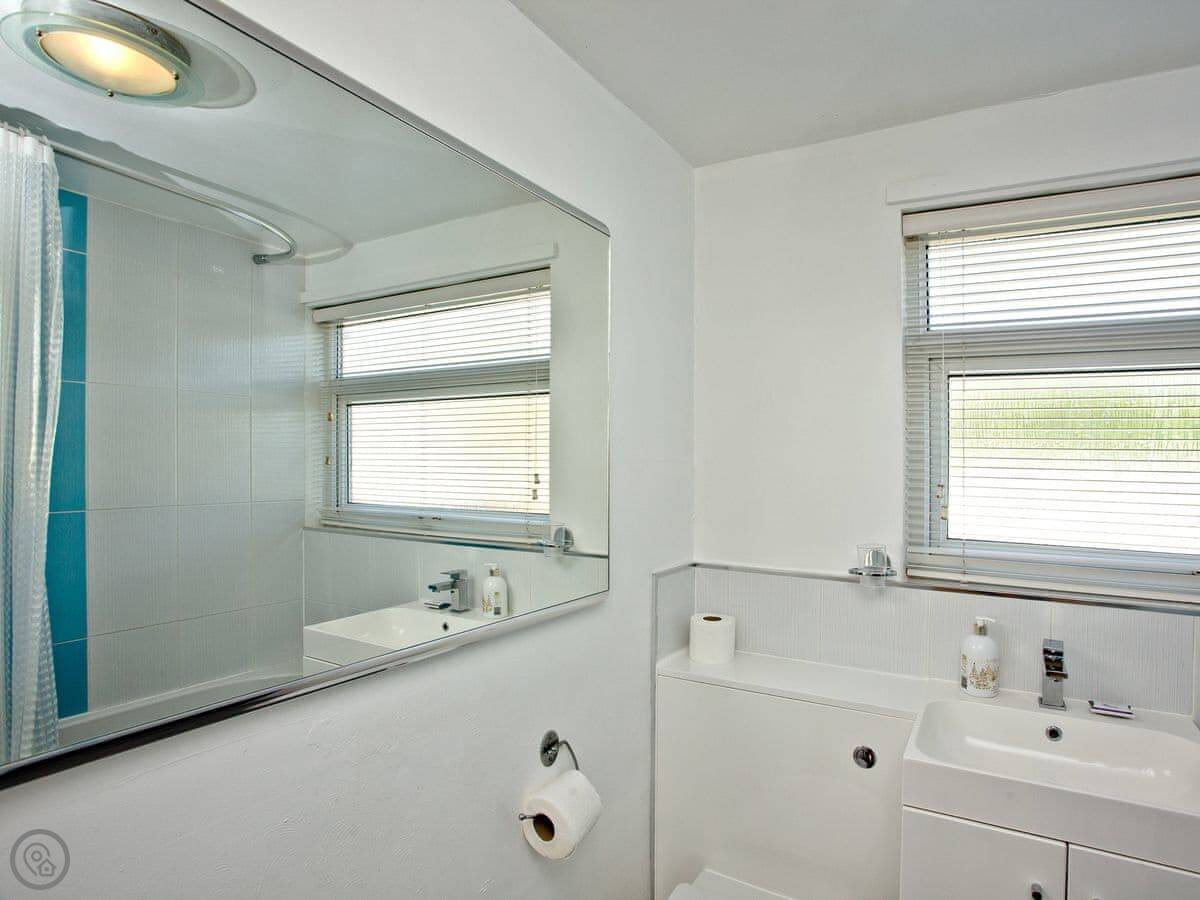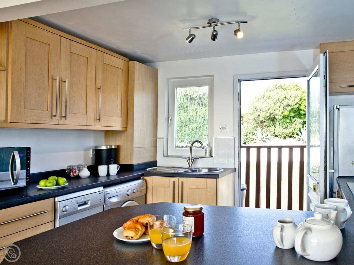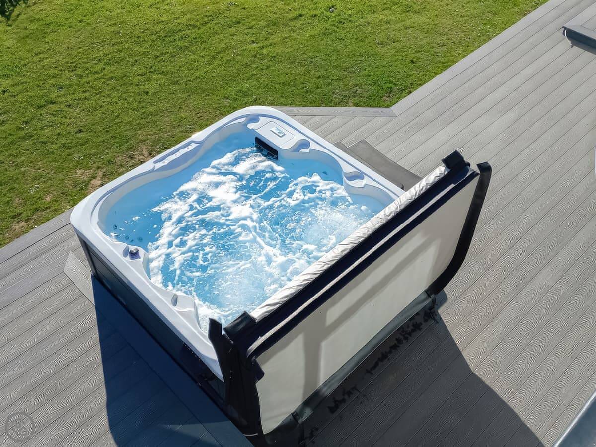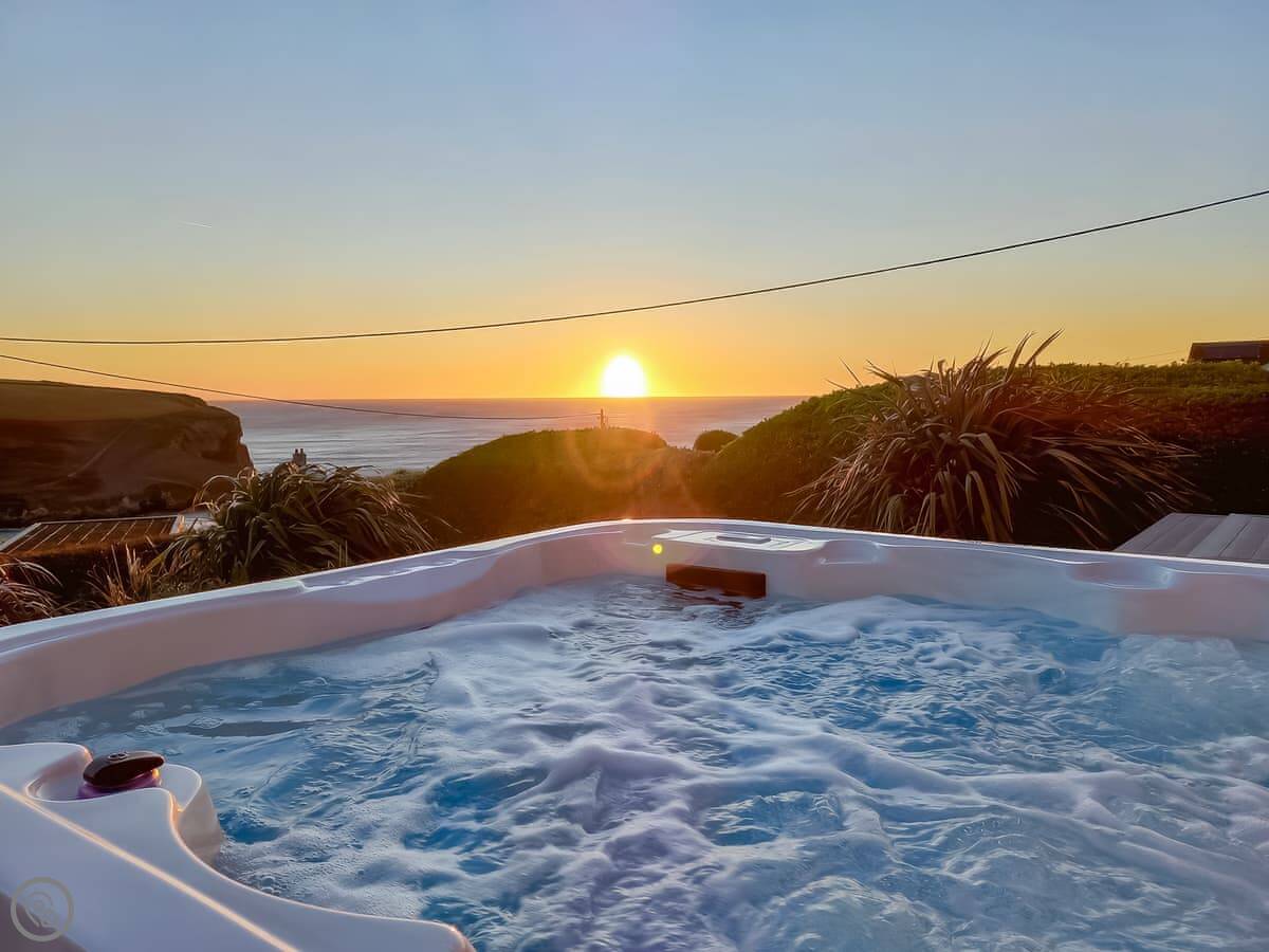 Outside, there’s a big decked area with a dining table, sofas, a barbecue and a hot tub. There’s also a warm outdoor shower which is handy after the beach. The garden is south facing, so you get the sun.